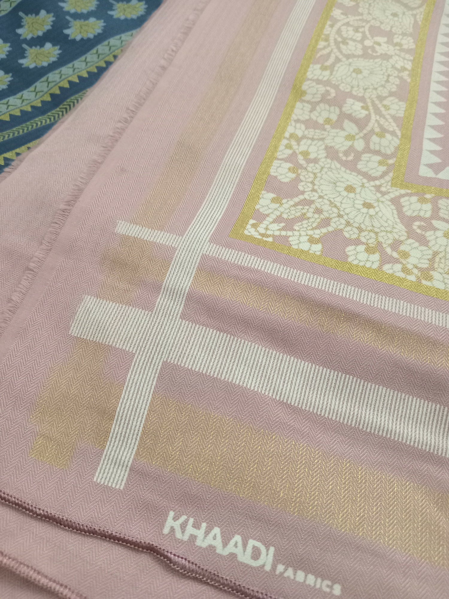 | MATERIAL & MEASUREMENT | Khadder shawls in navy blue and tea pink colour with block printing. |