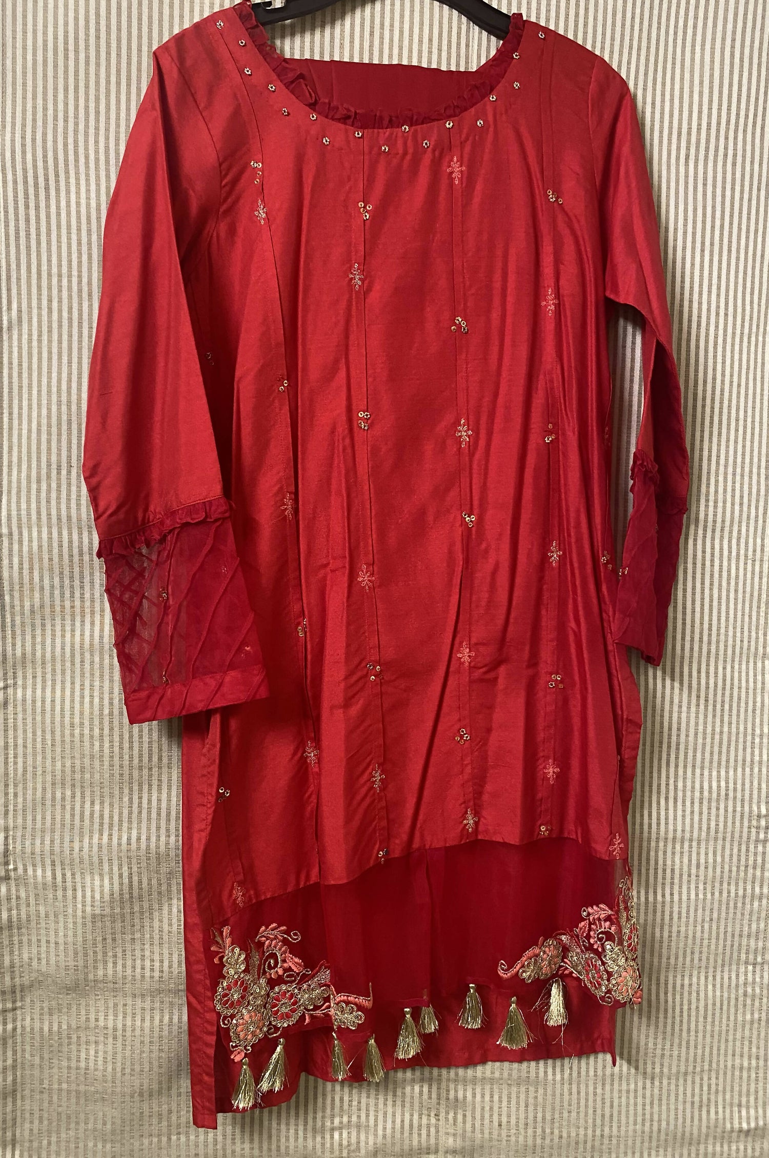 Khaddi Net Red Kurta | Women Locally Made Kurta | Small | Worn Once