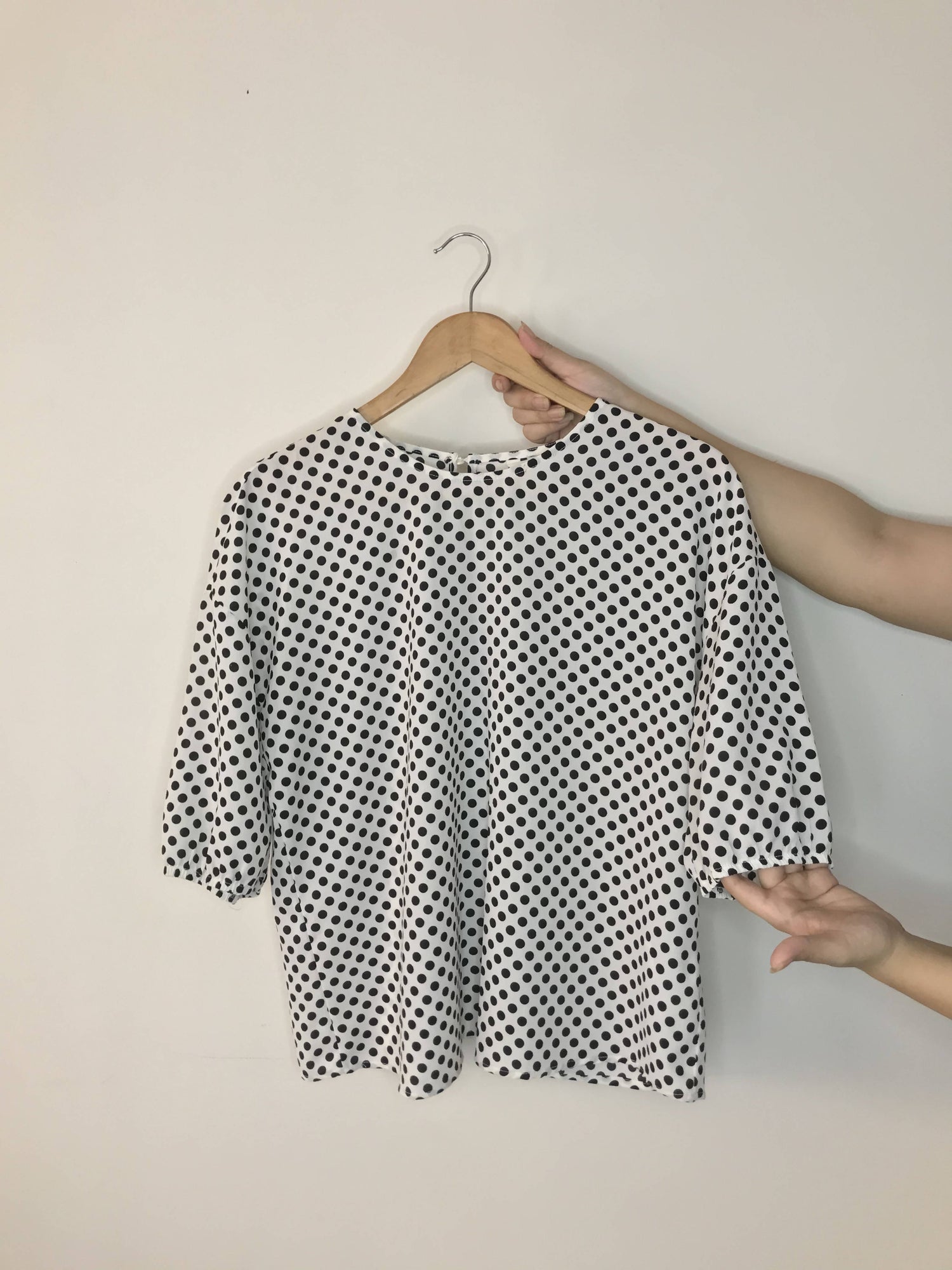 Koton | Black White Polka Dot Blouse Puff Sleeves | Women Tops & Shirts | Medium |Worn Once is backordered and will ship as soon as it is back in stock.