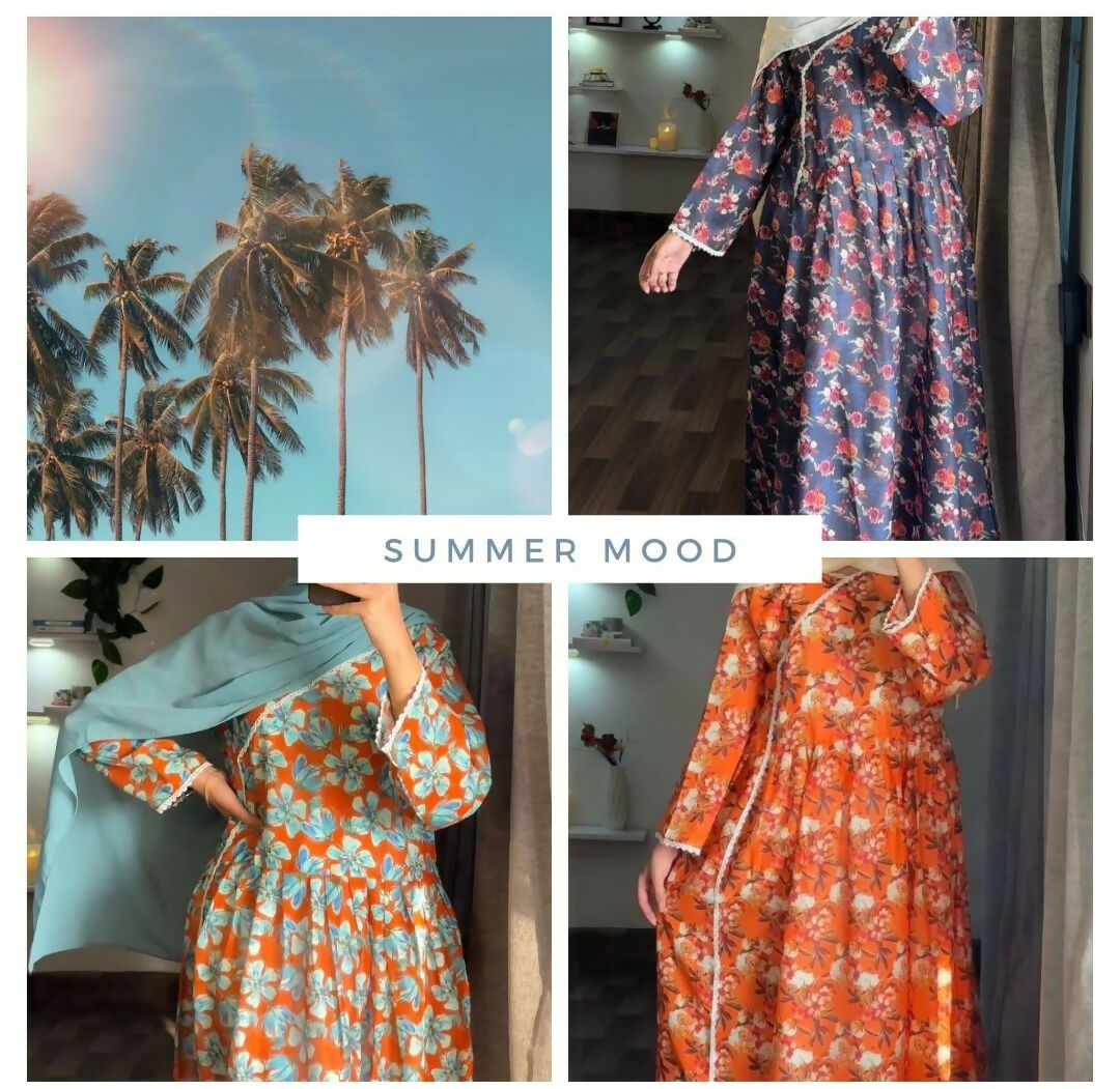 Lawn Printed Maxi with lace work | Women Locally Made Kurta | Size: Free Size | Brand New - Blueish purple is backordered and will ship as soon as it is back in stock.