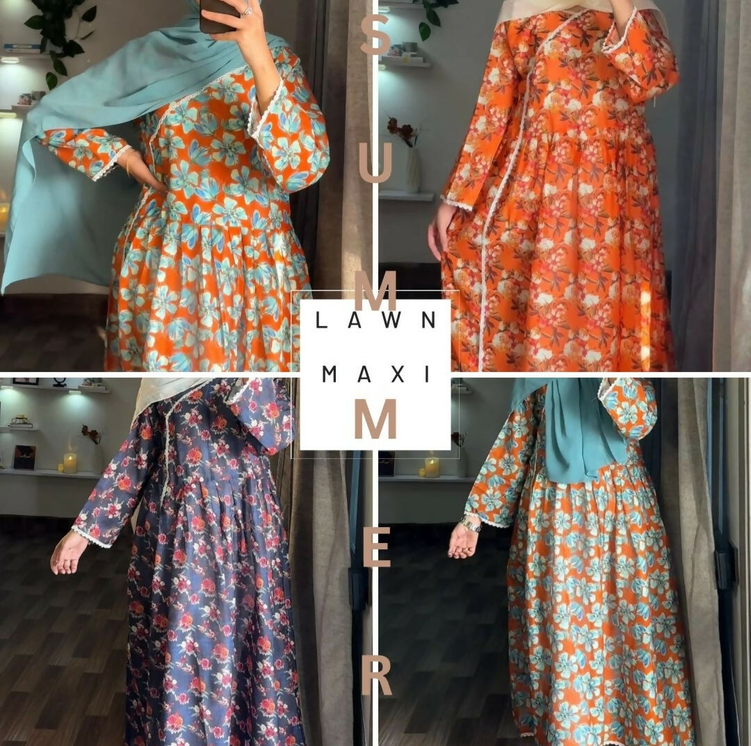 Lawn Printed Maxi with lace work | Women Locally Made Kurta | Size: Free Size | Brand New