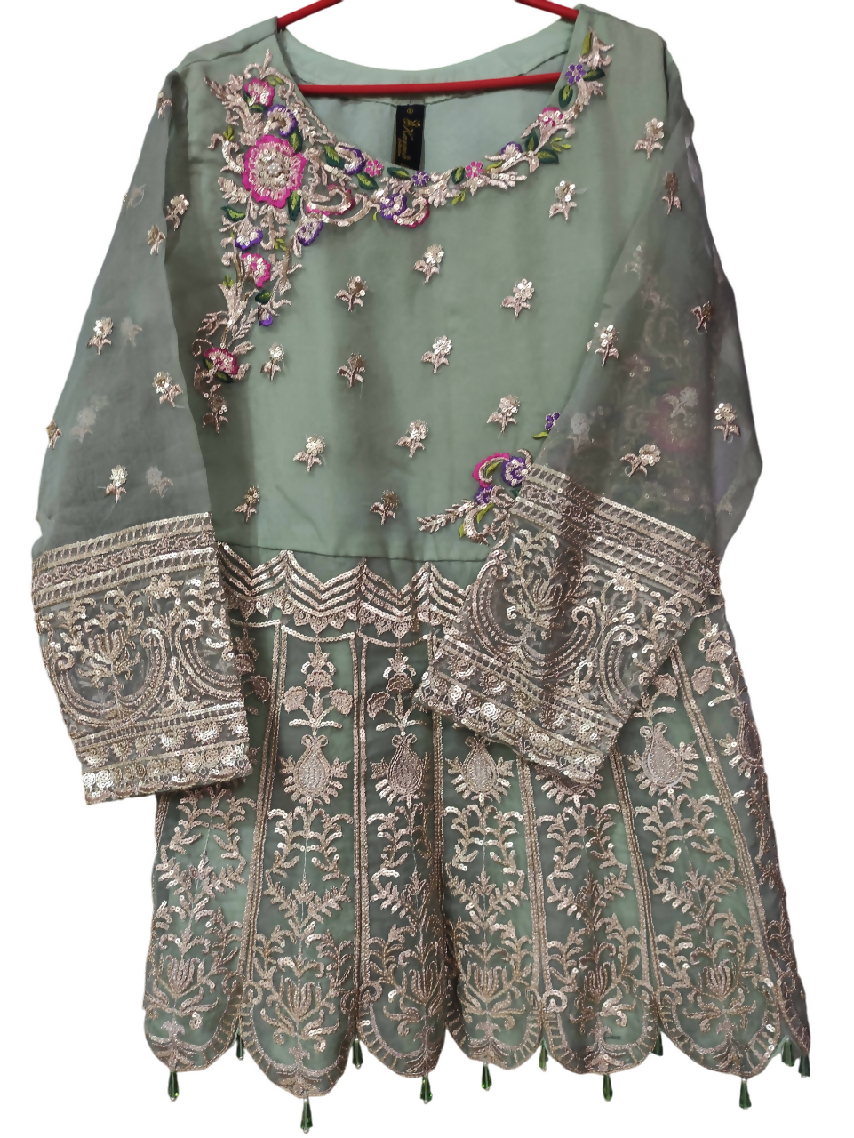 | MATERIAL & MEASUREMENT | Organza Shirt lenth: 27.5 Sleeves length:19.5 Chest:19 Arm hole: 8 Lehenga length:41.5 |