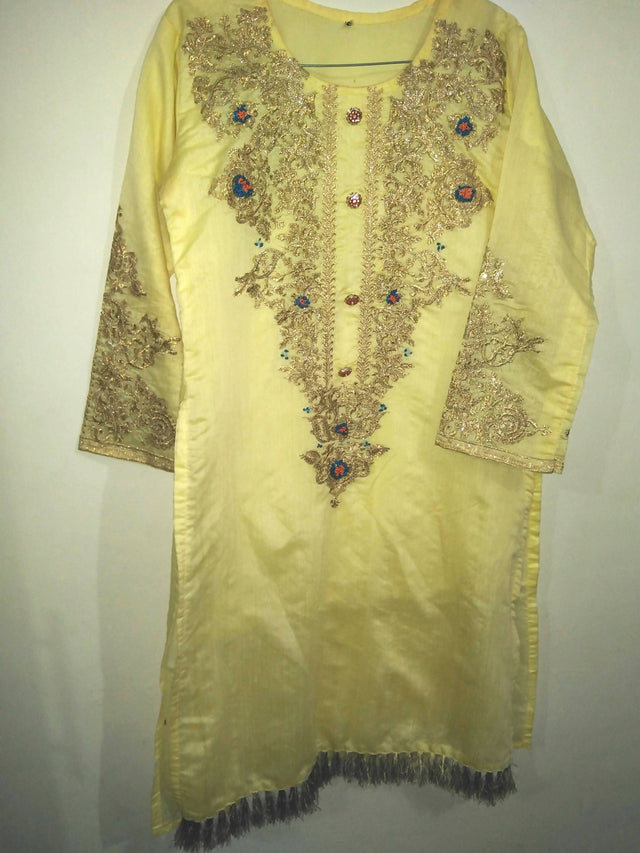 Lemon Fancy Hand & Machine Embroided Kurta | Women Locally Made Kurta | Small | New
