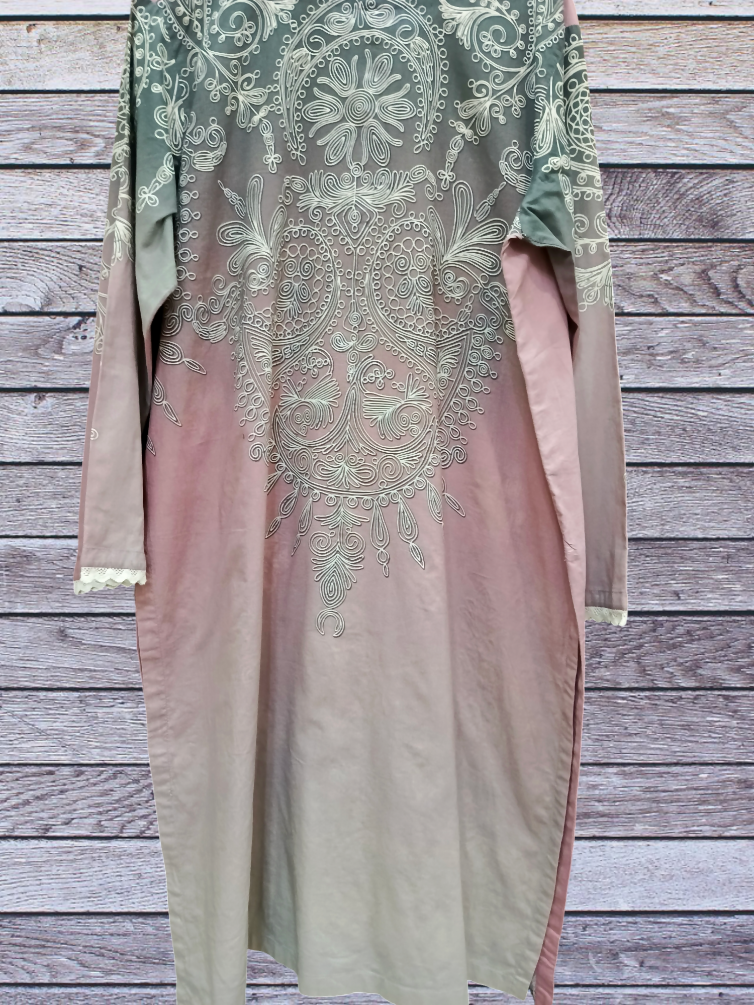 | MATERIAL & MEASUREMENT | Chest: 22 inches Shoulders: 16.5 inches Arm Hole: 8 inches Sleeves: 22 inches Length: 41 inches Width: 24.5 inches Neck: 8.75 inches Neck in Depth: 7 inches |