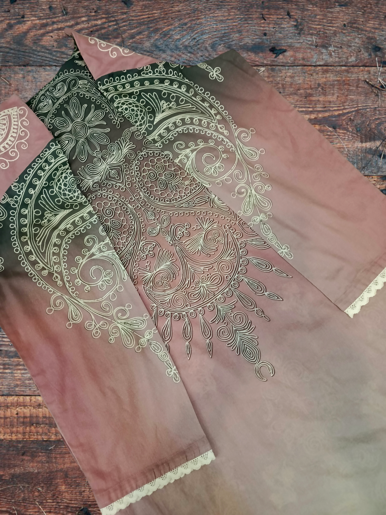 Product Description: A heavy Embroided Shirt highlighted with crystal stars in embroidery adds a touch of more elegance in it.Neckline is highlighted with buttons.
