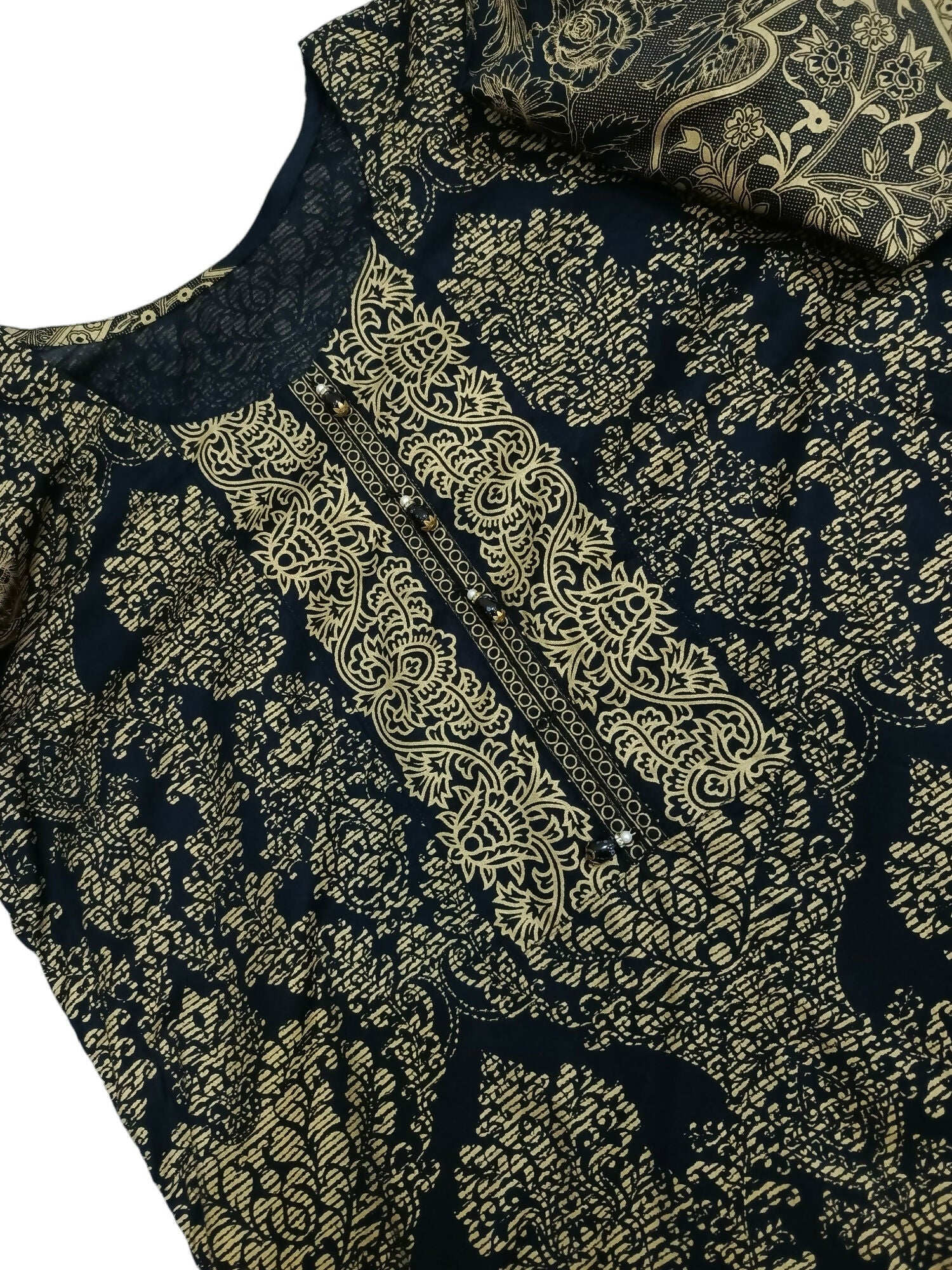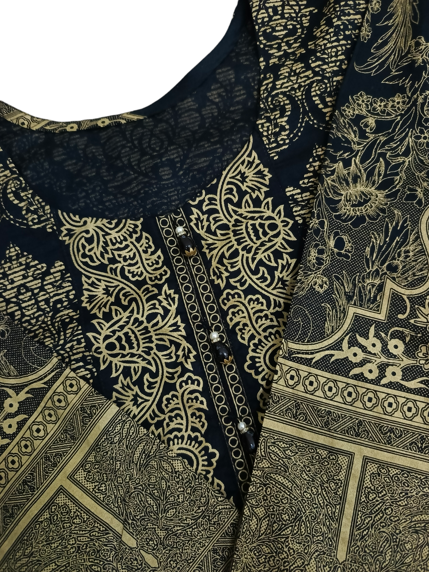 Product Description: A paste printed formal shirt it's neckline is highlighted with black and grey buttons.The overall print pasted pattern on shirt makes it even more delightful.