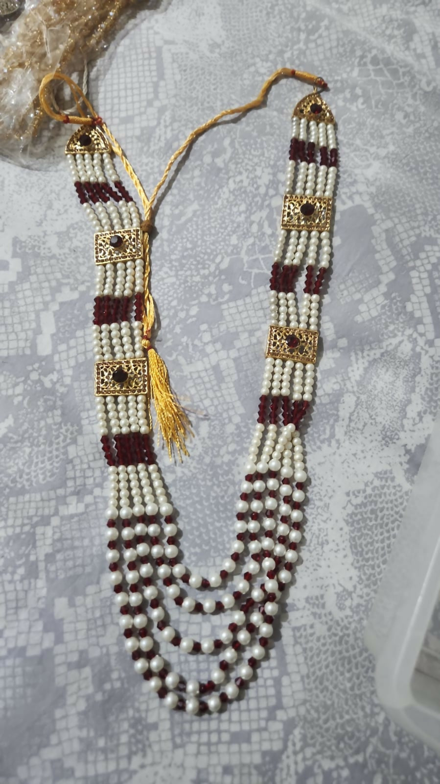 Long Mala Dark Red & White Necklace | Women Jewelry | New