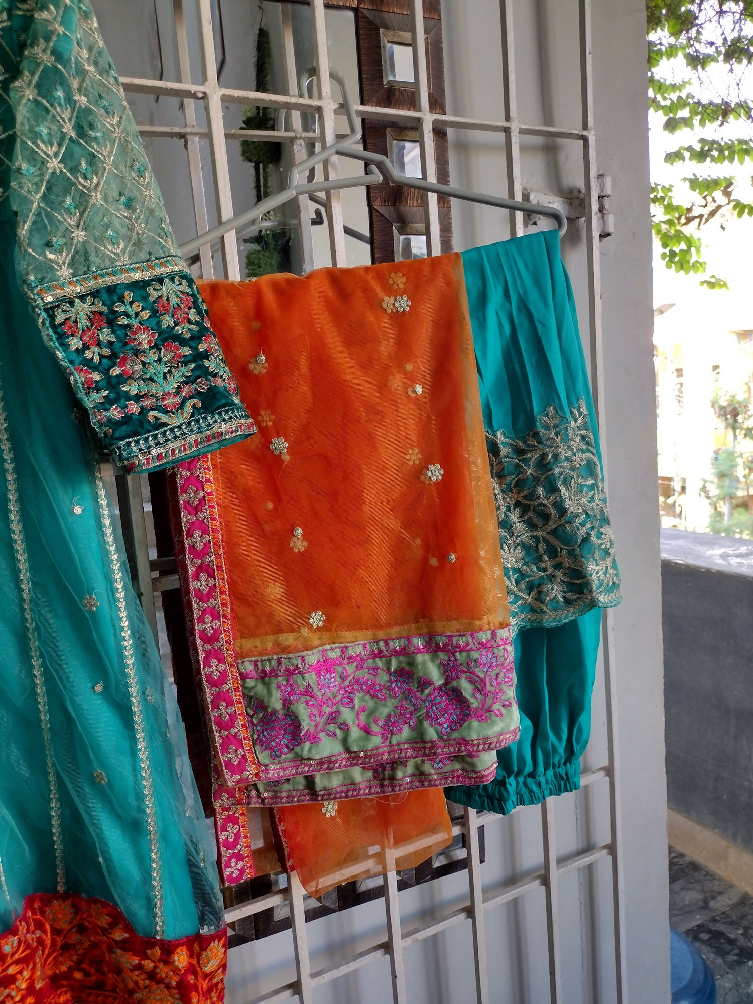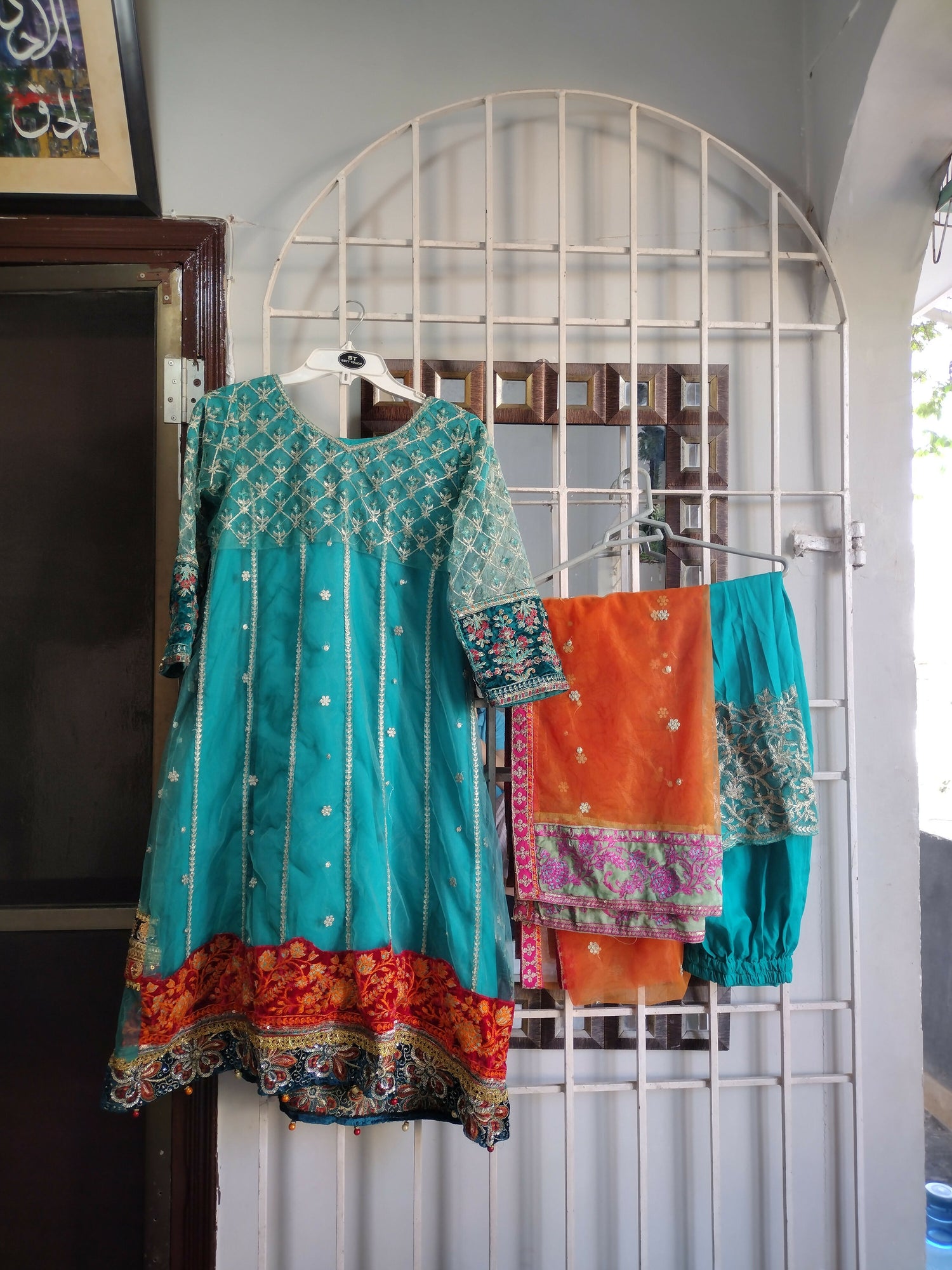 | MATERIAL & MEASUREMENT | Maria b khadi net with beautiful detailing Condition: 10/10 Chest:21 3 piece |