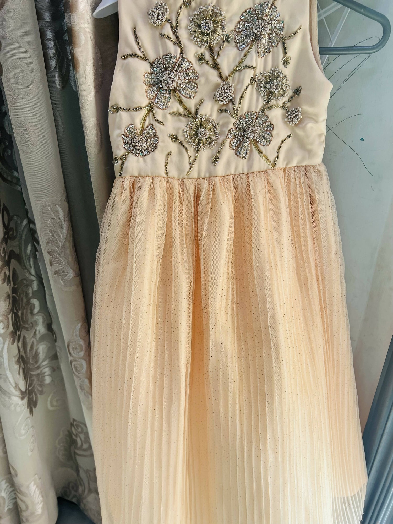 Minnie Minor | Beige Silk and Net Frock | Kids | Girls Skirts & Dresses | 18 to 24 Months |Preloved