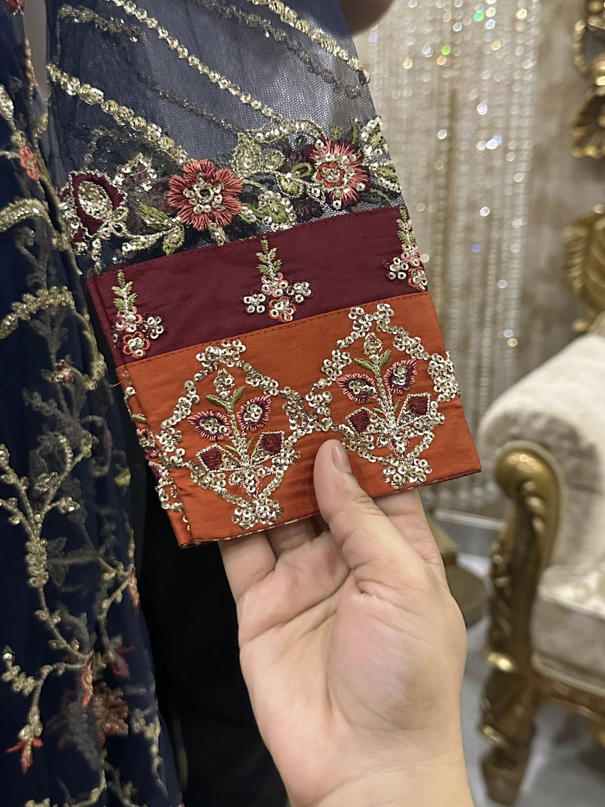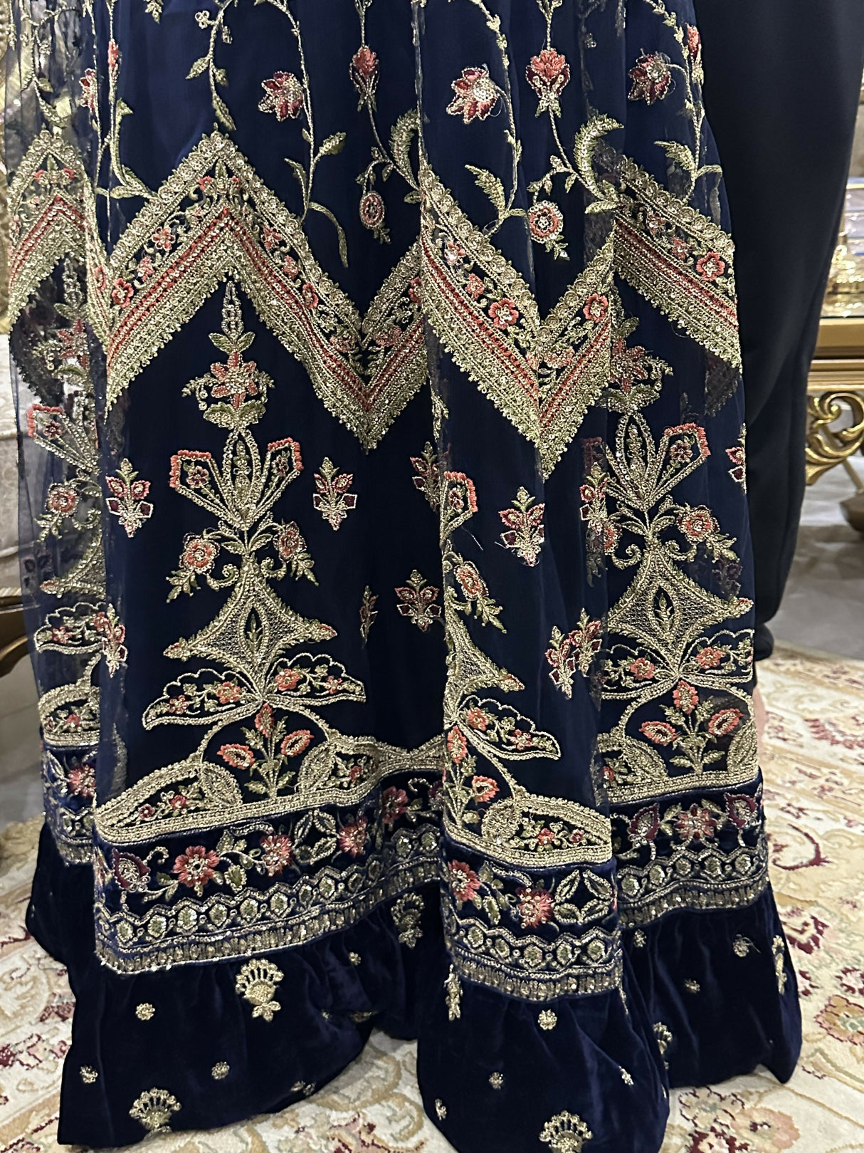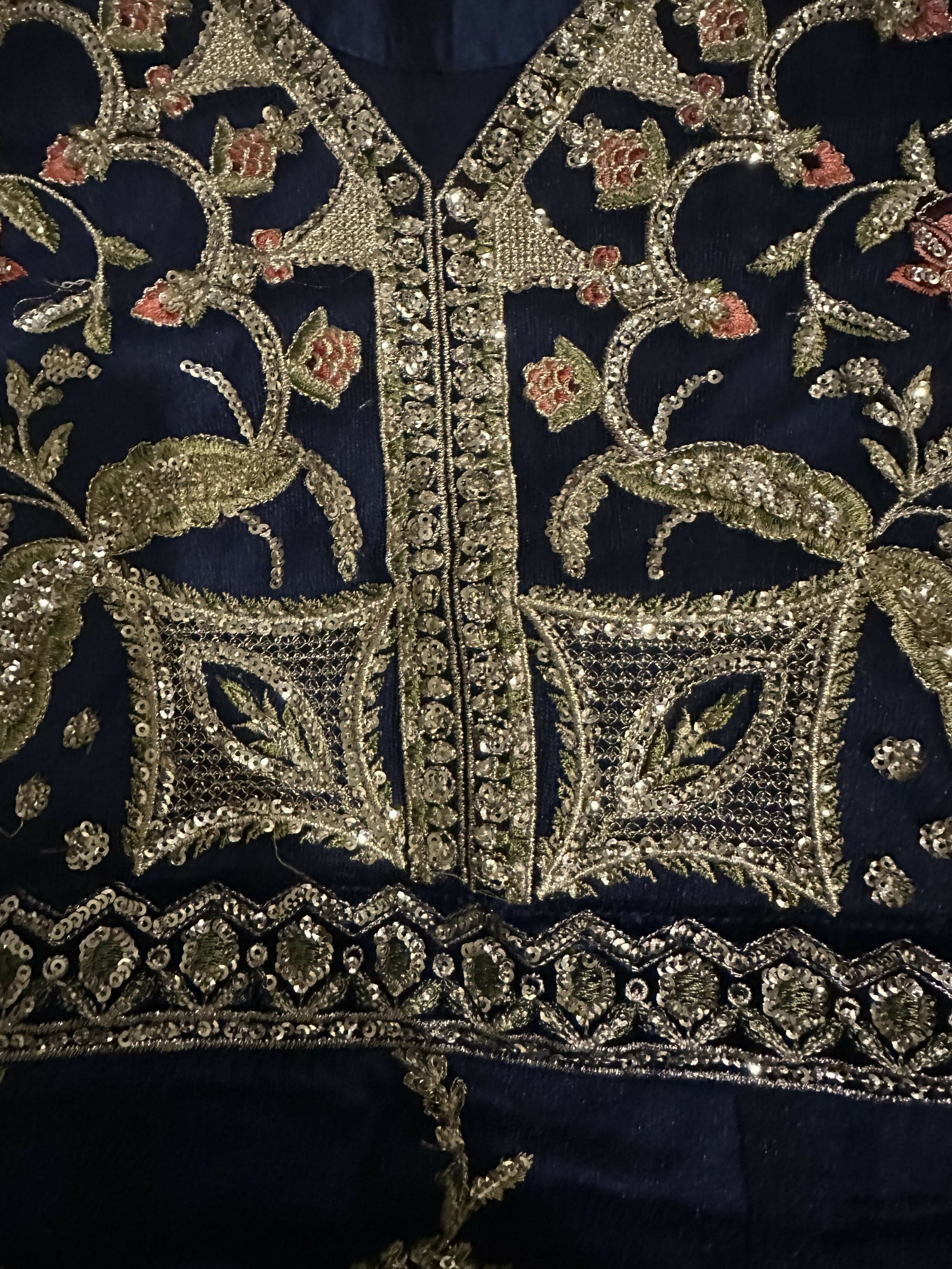 | MATERIAL & MEASUREMENT | Material is good quality net raw silk inner used , embroidery with fine details measurement (inch) Length:58-59 chest: 18 Ghera: 50 |