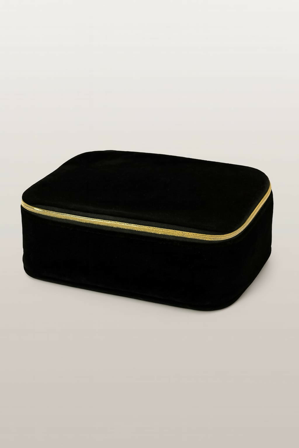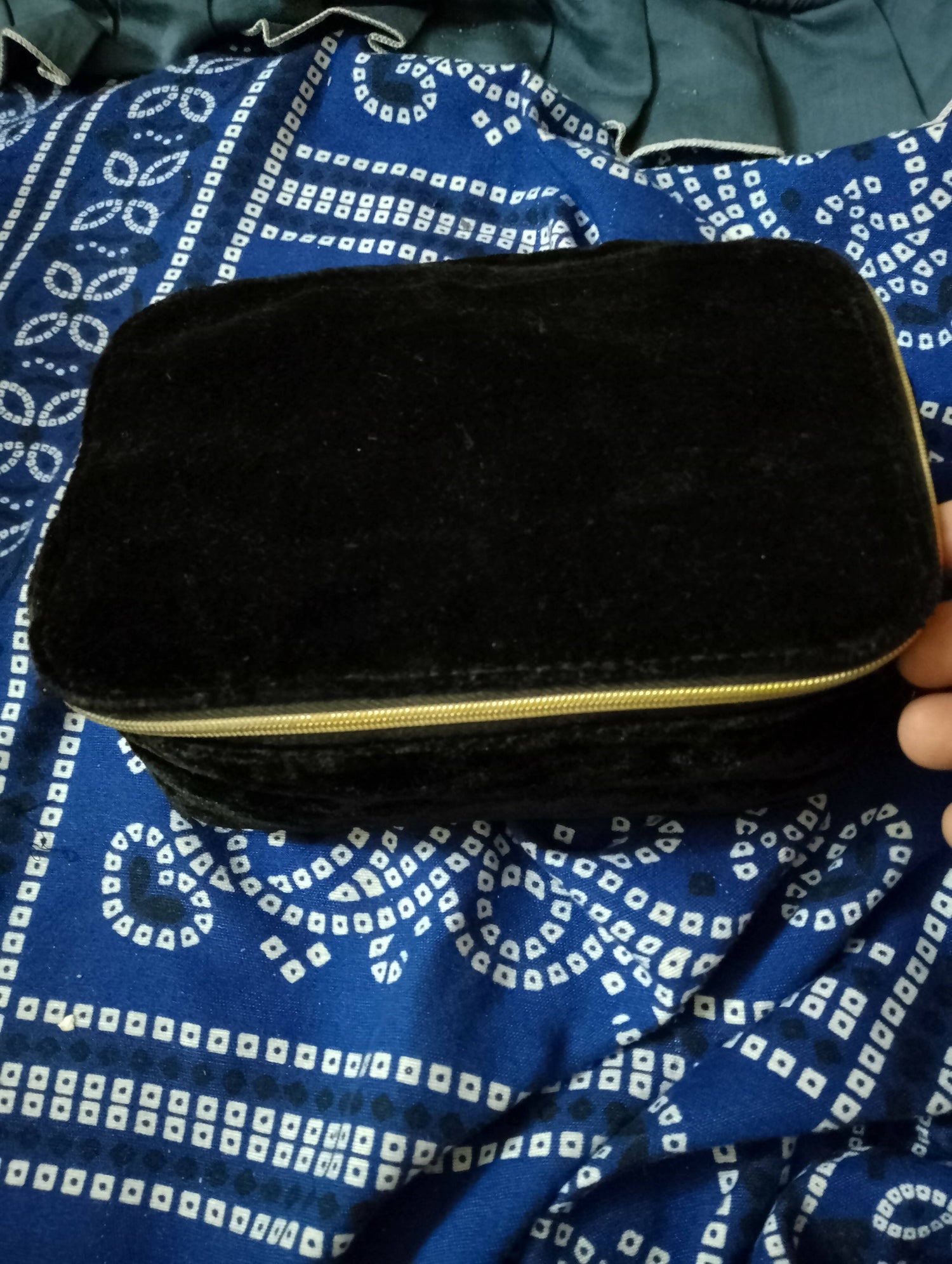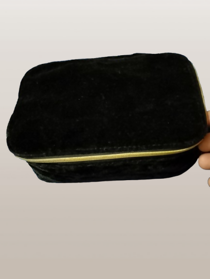 | MATERIAL & MEASUREMENT | Medium size full black beautiful velvet medium size makeup vanity length...6 inches...width:9 inches |