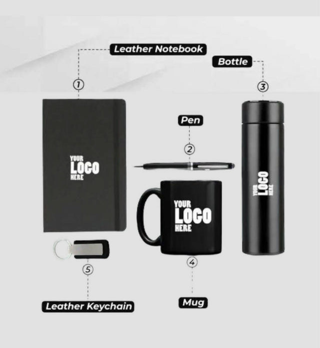 Number of Piece: 5 pc in the box ( Temperature Bottle, Mug, Metal Keychain, Metal Pen, Leather Diary)