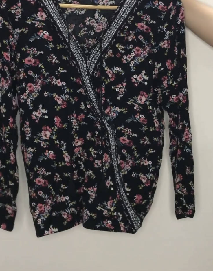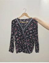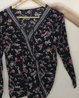 Outfitters | Black Floral Criss Cross Draped Shirt | Women Tops & Shirts | Small | Preloved