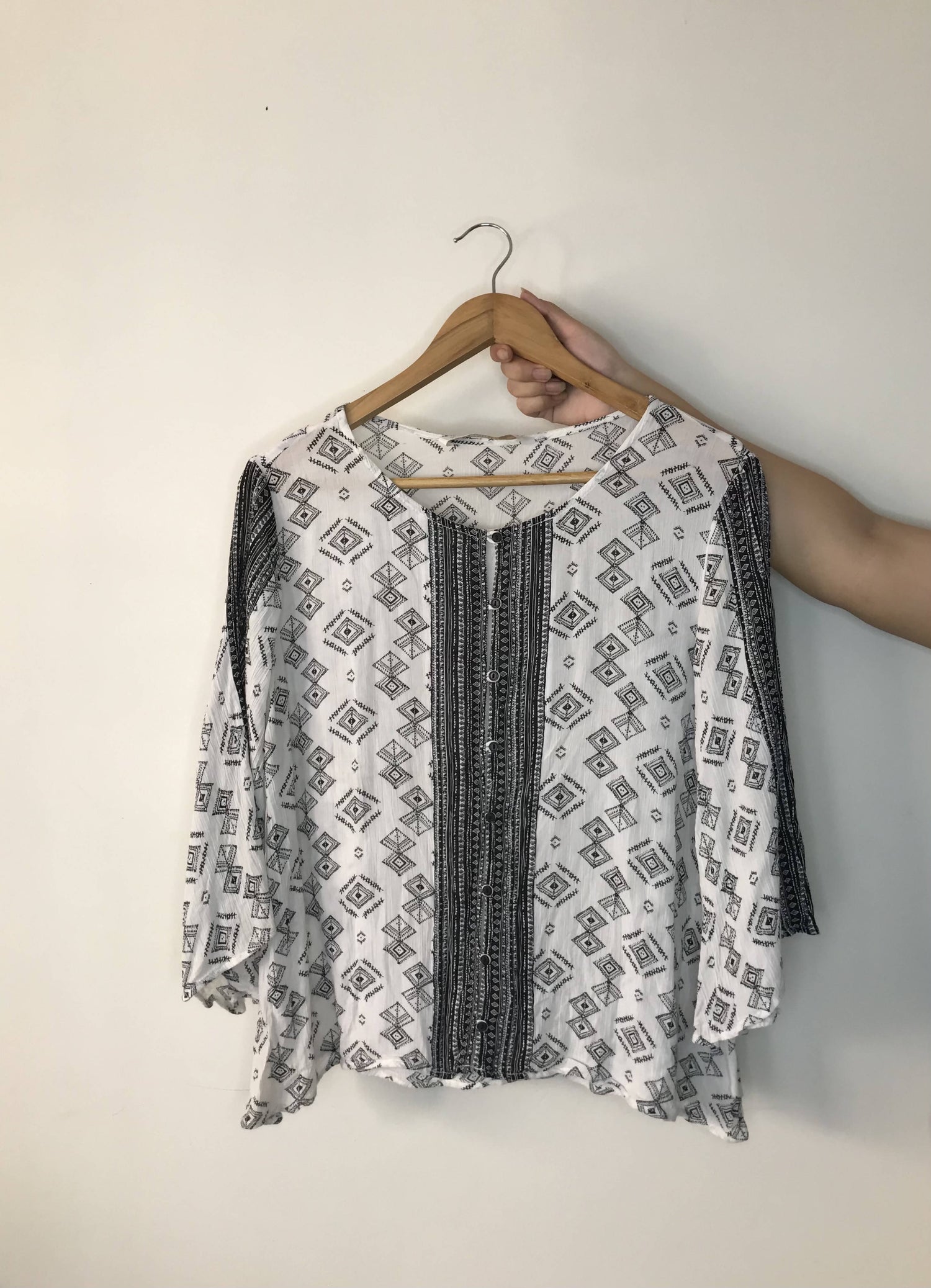 Outfitters | White Black Printed Bohemian Top | Women Tops & Shirts | Small | Preloved is backordered and will ship as soon as it is back in stock.