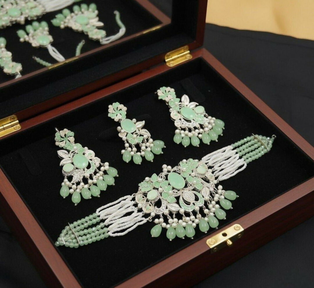 Number of pieces: 4 (1 pair of earrings,1 choker,1 bindi)