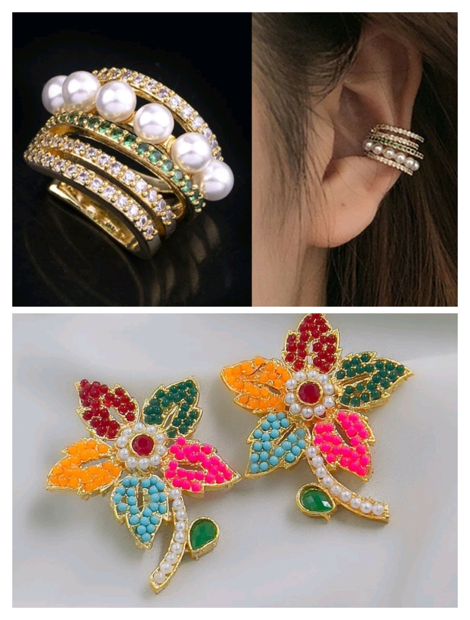 Pack of 1 pair of earrings & 1 earcuff | Women Jewelry | Earrings | Brand New