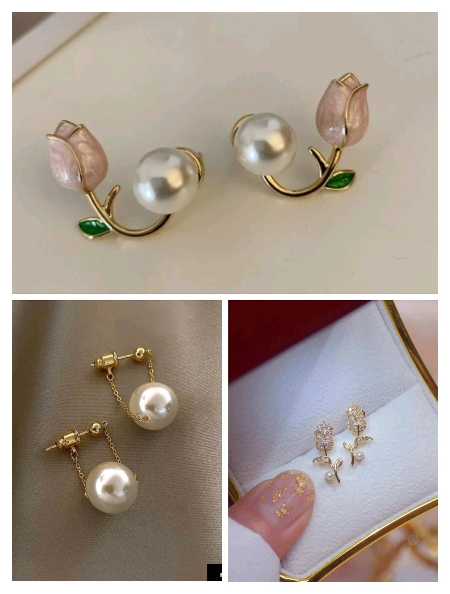 Pack of 3 Pairs of Pearl Tops | Women Jewelry | Earrings | Size: 2cm×2cm | New