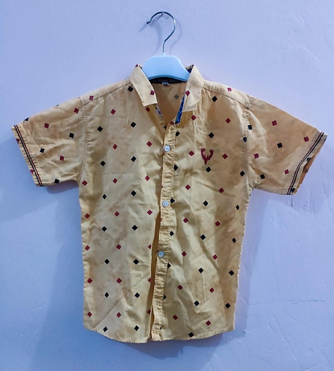 | MATERIAL & MEASUREMENT | Size: Medium (4-6 years) Red/Blue/Blue black shirts Collar 11" Sleeves 4.5" Length 17" Yellow shirt Length 18.5" Sleeves 5" Collar 11.5" Material: Soft Cotton |