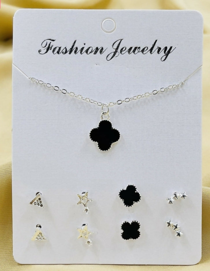 Pack of 4 Pairs of Earrings and Necklace with Golden Bracelet | Women Jewelry | New