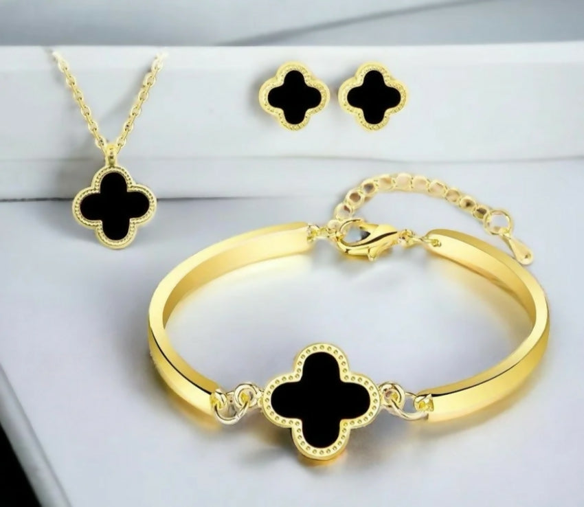 Number of pieces: 4 (1 pair of earrings,1 double side clover pendant,1 bracelet)