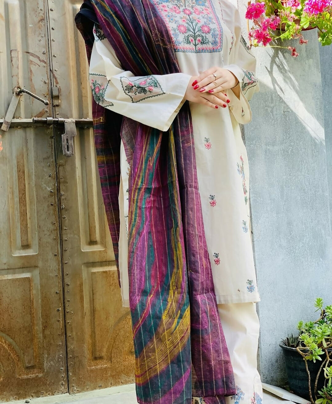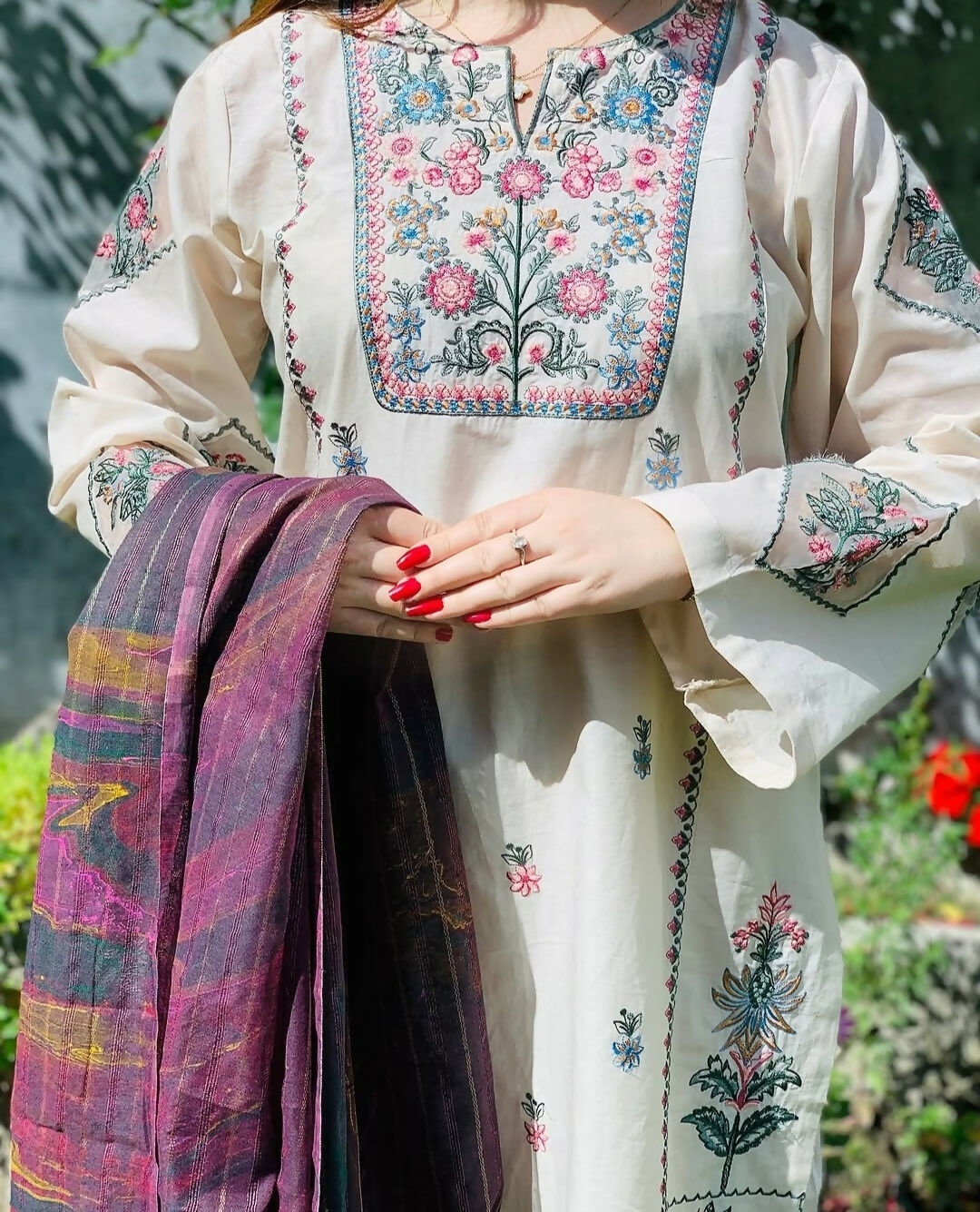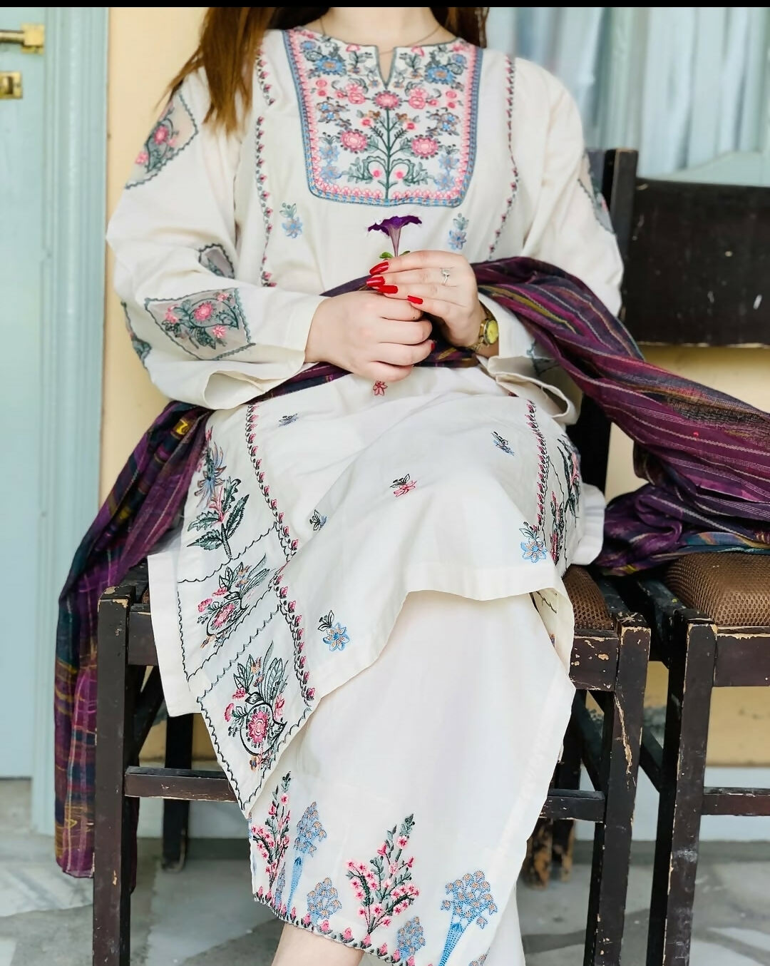 White Embroidered 2 PC | Women Locally Made Kurta | Size: Medium, Large | Brand New