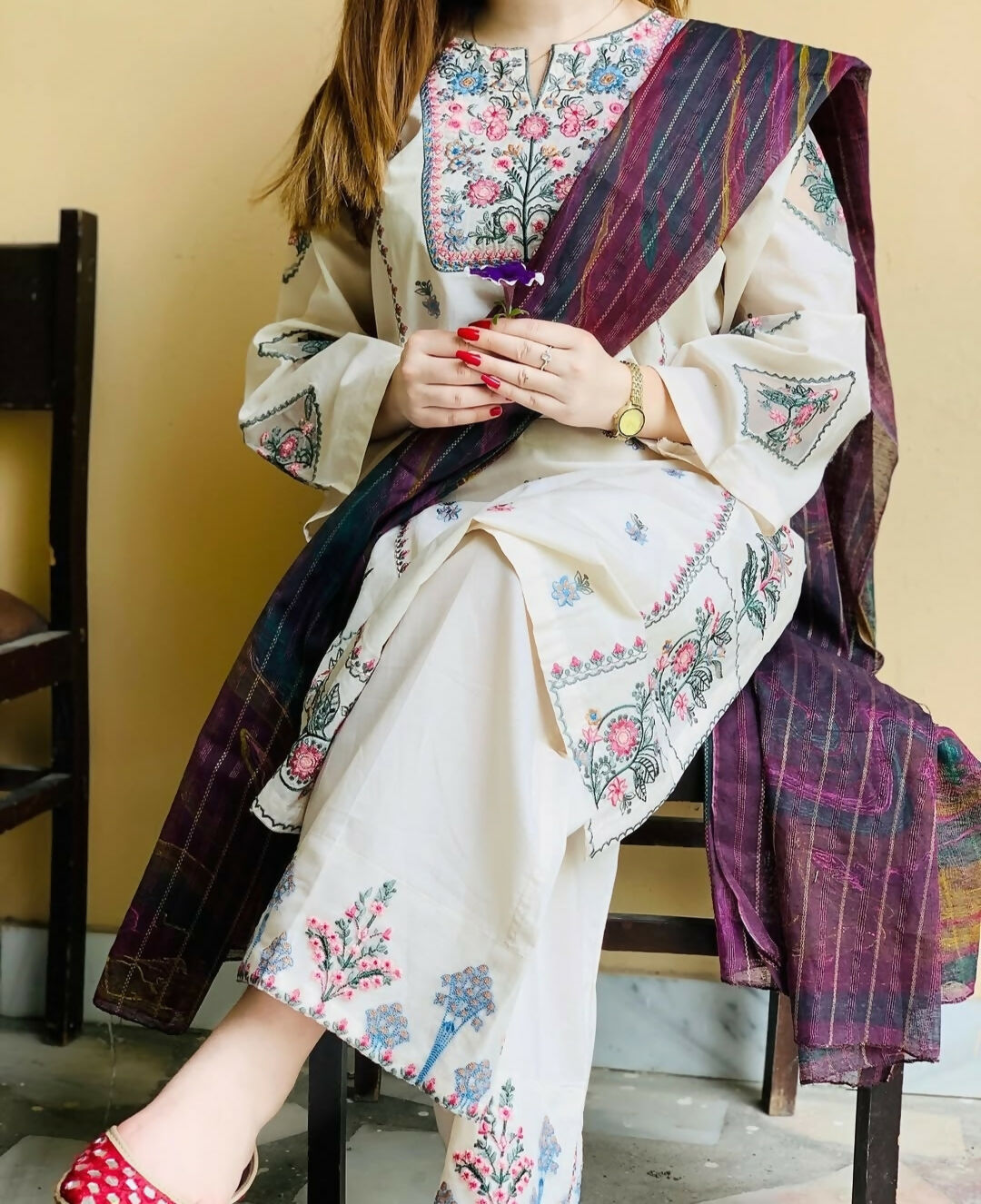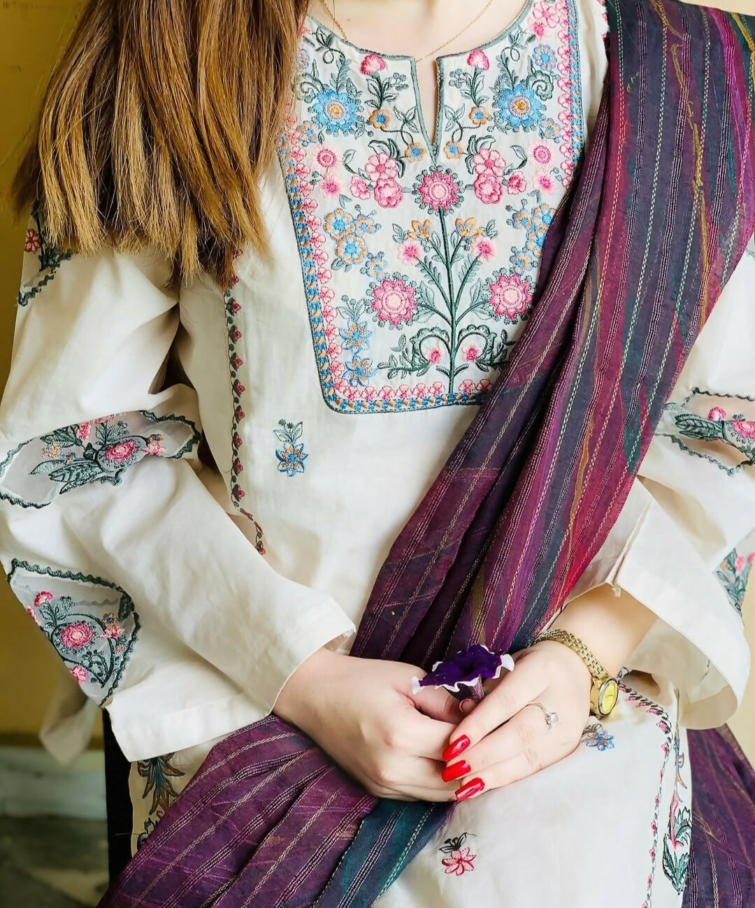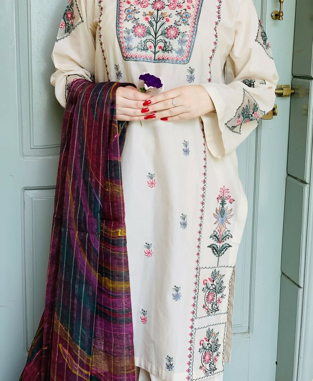 White Embroidered 2 PC | Women Locally Made Kurta | Size: Medium, Large | Brand New