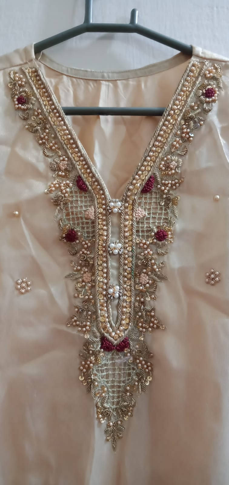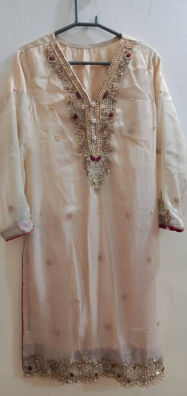 Peach Beige Organza Fancy Kurta | Women Locally Made Formals | Small | Worn Once