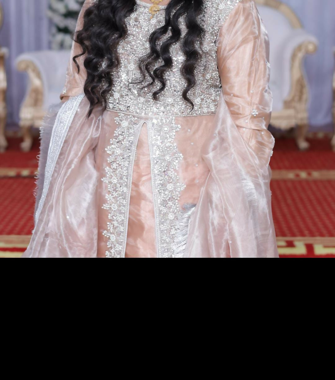 MATERIAL & MEASUREMENT Material:organza measurements (inch) shoulder 7 west 18 length 52 chest 20