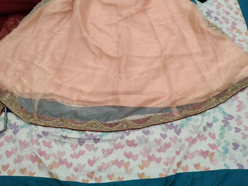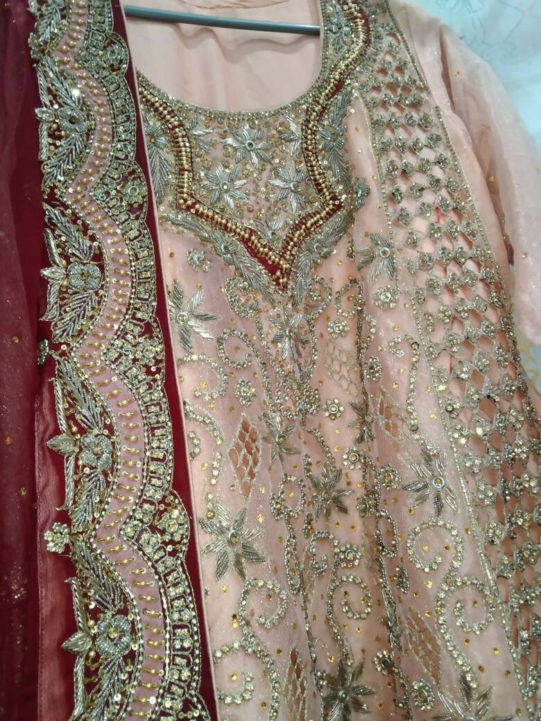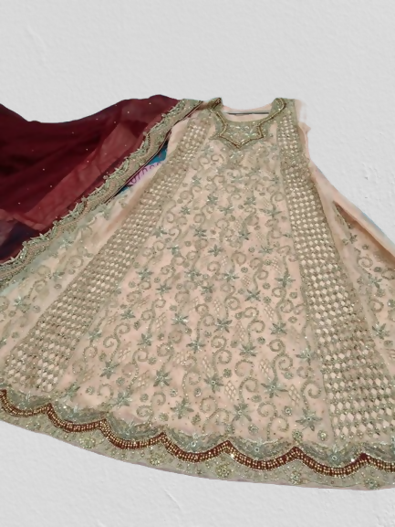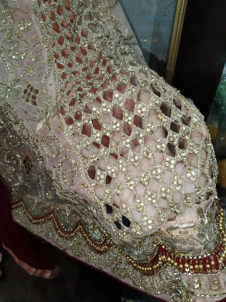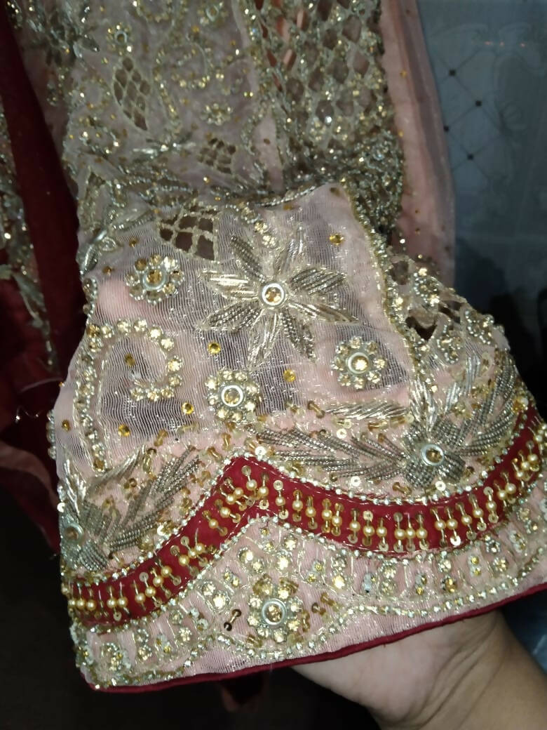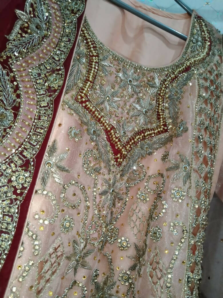 Graceful Peach Barat maxi and maroon dupatta | Women Bridals | Medium | Worn Once