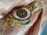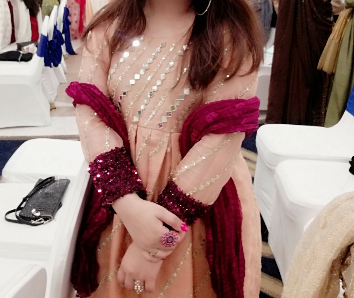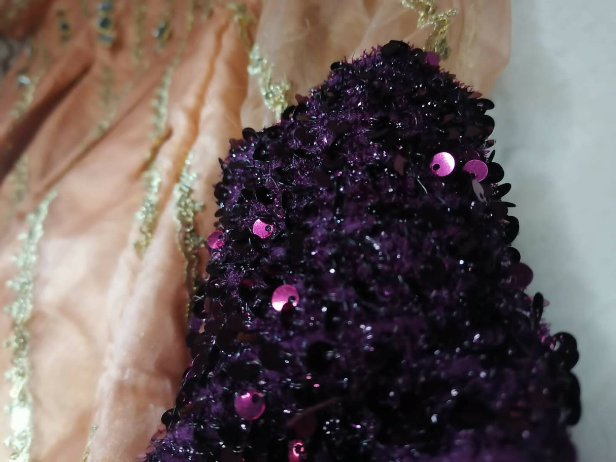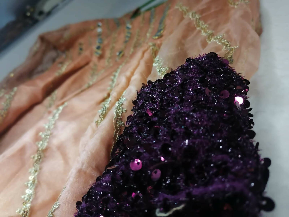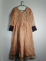 Preloved peach mirror work organza frock