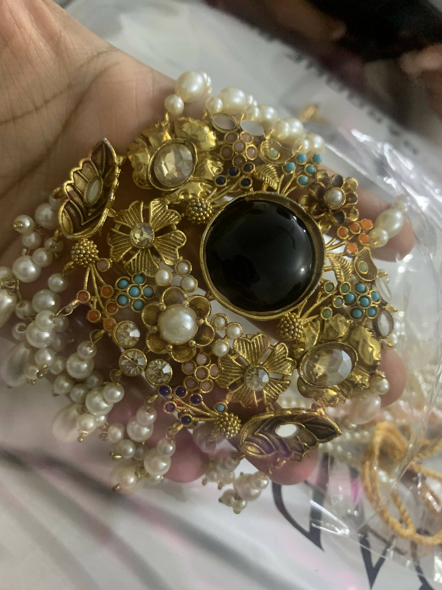 Pearl Mala with Stones Pendant | Women Jewelry | Worn Once is backordered and will ship as soon as it is back in stock.