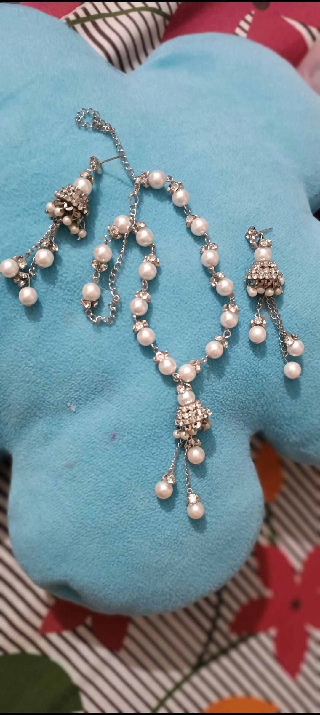 | MATERIAL & MEASUREMENT | Pearls set Earrings Necklace Perfect condition |