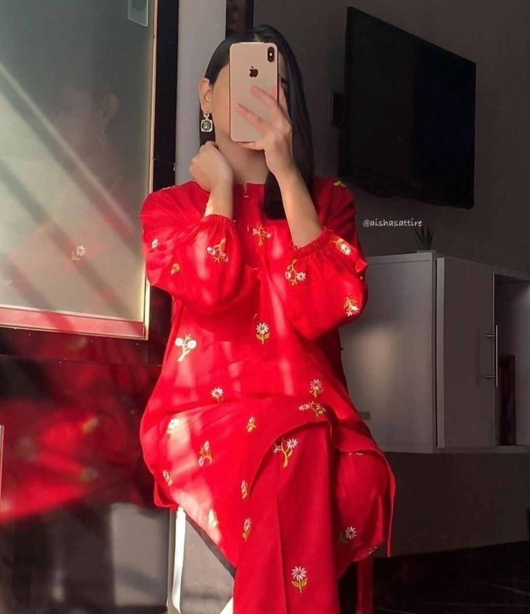 Floral Embroidery 2 PC Co-ord Set | Women Locally Made Kurta | Medium & Large | Brand New - Medium / Red is backordered and will ship as soon as it is back in stock.