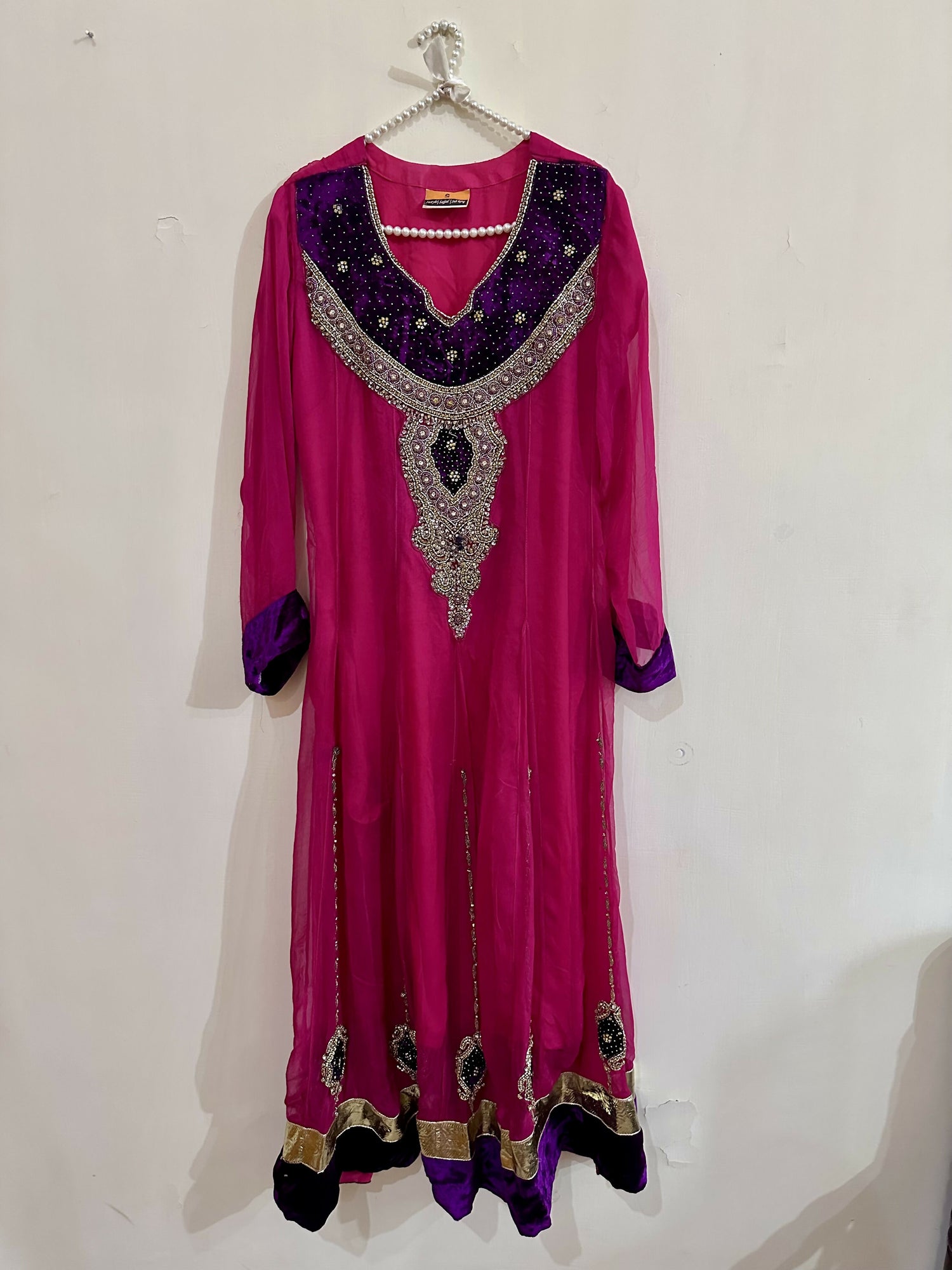 | MATERIAL & MEASUREMENT | Fabric / Material: Chiffon Measurement : Chest: 19 Shoulder: 15 Length: 49 Pajama length: 56 |