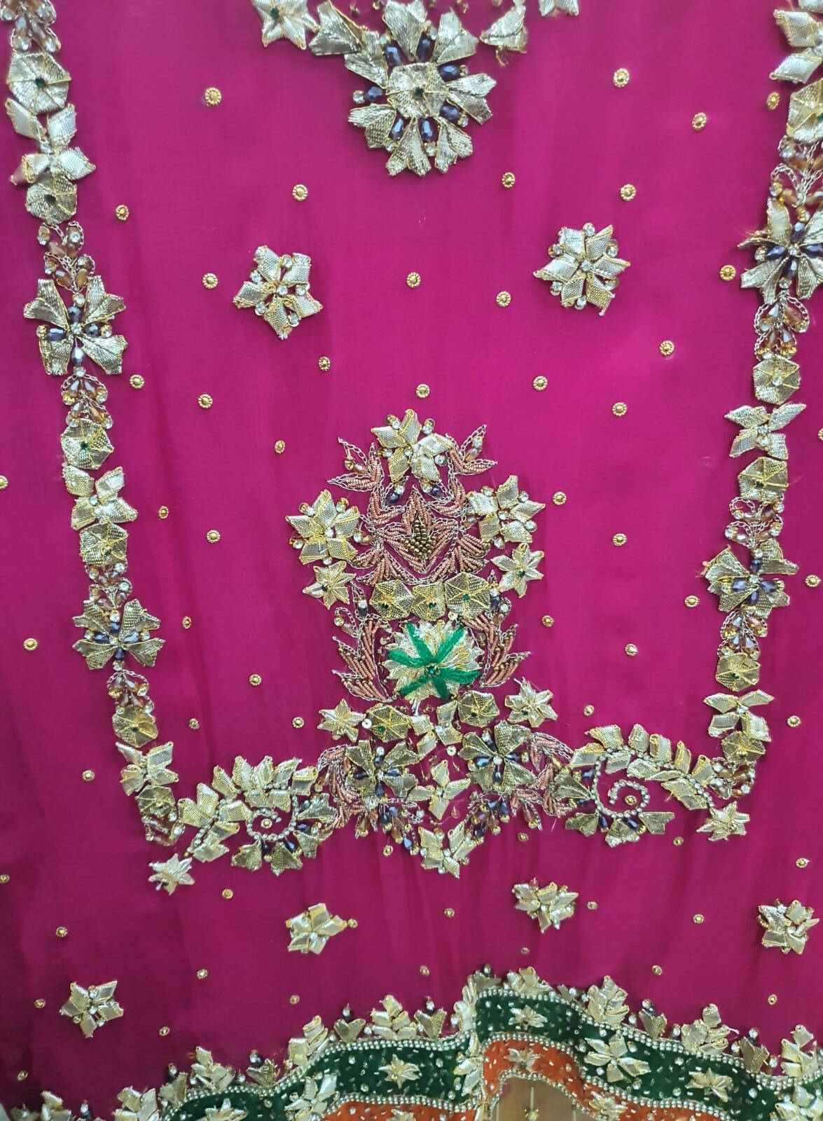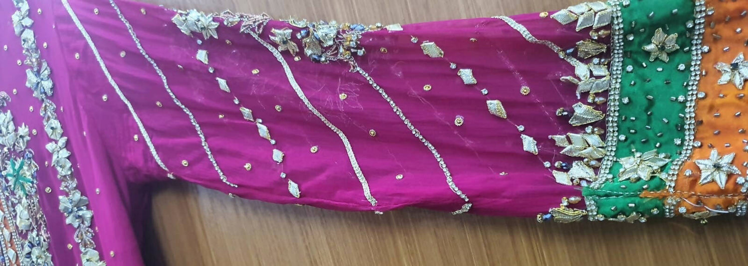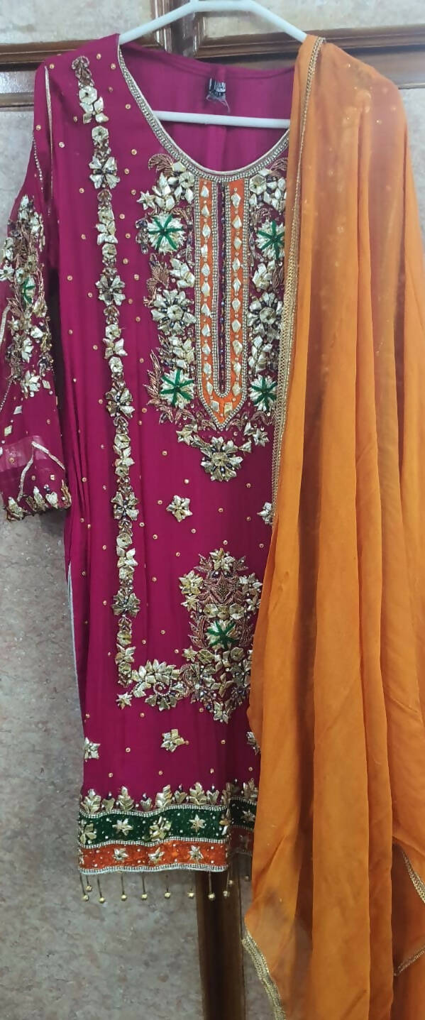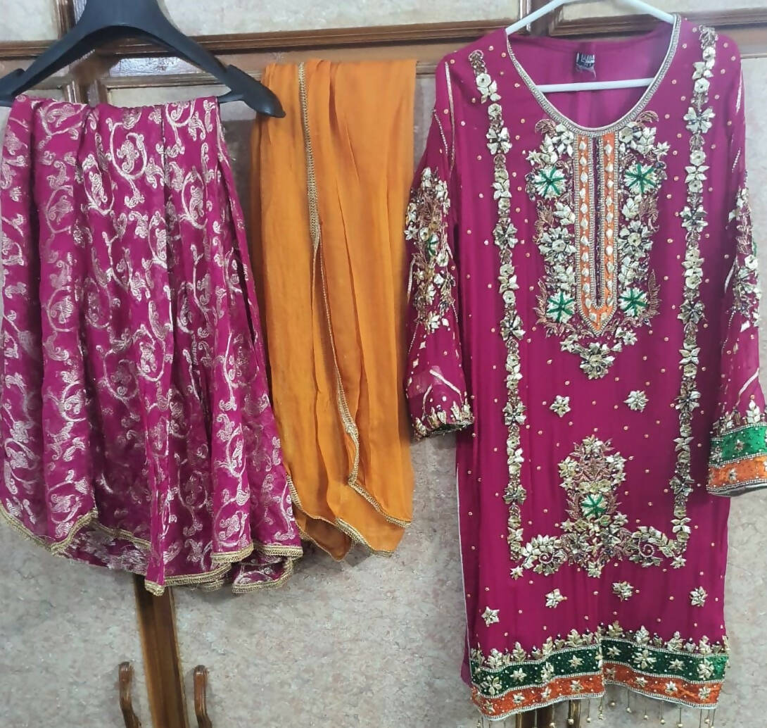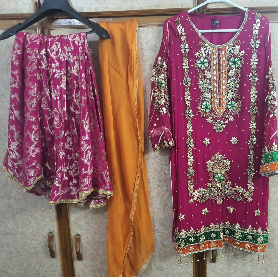 Additional details: Gotta work on shirt , Fully embellished, Full work on shirt and Pink colour Sharara with orange colour Dupata