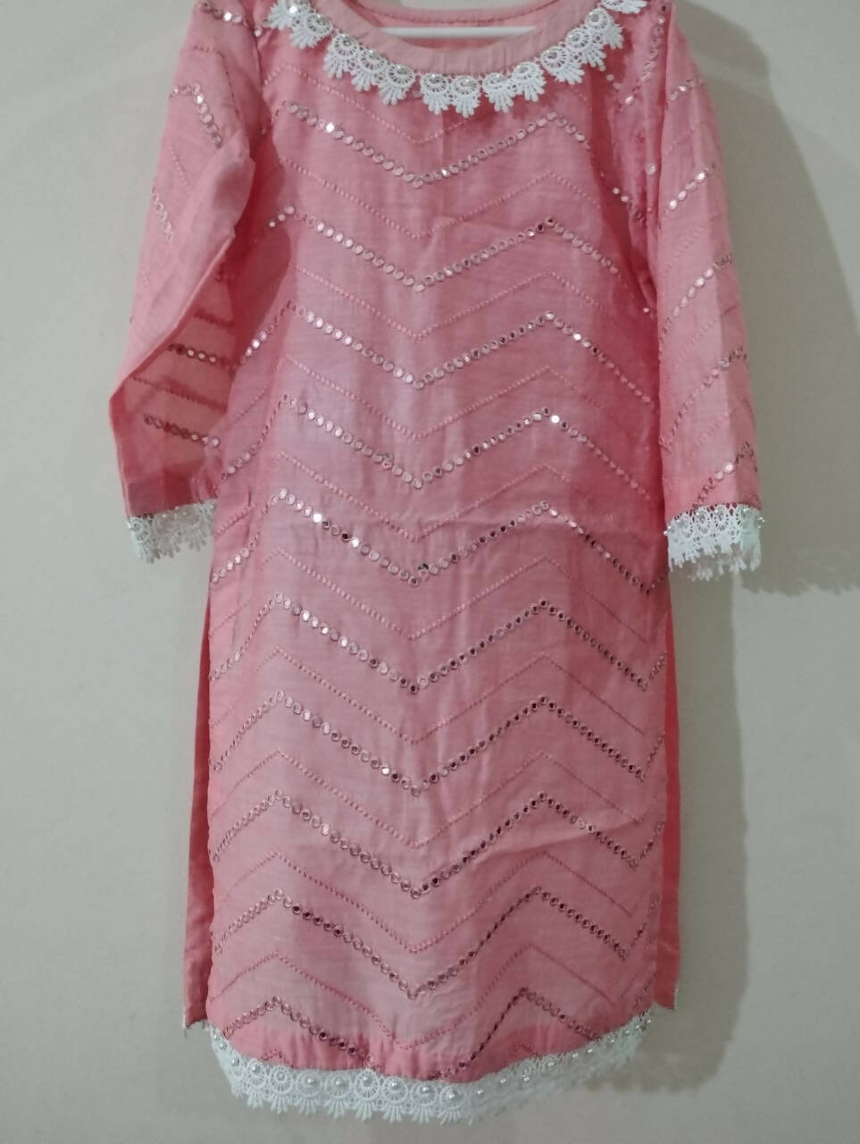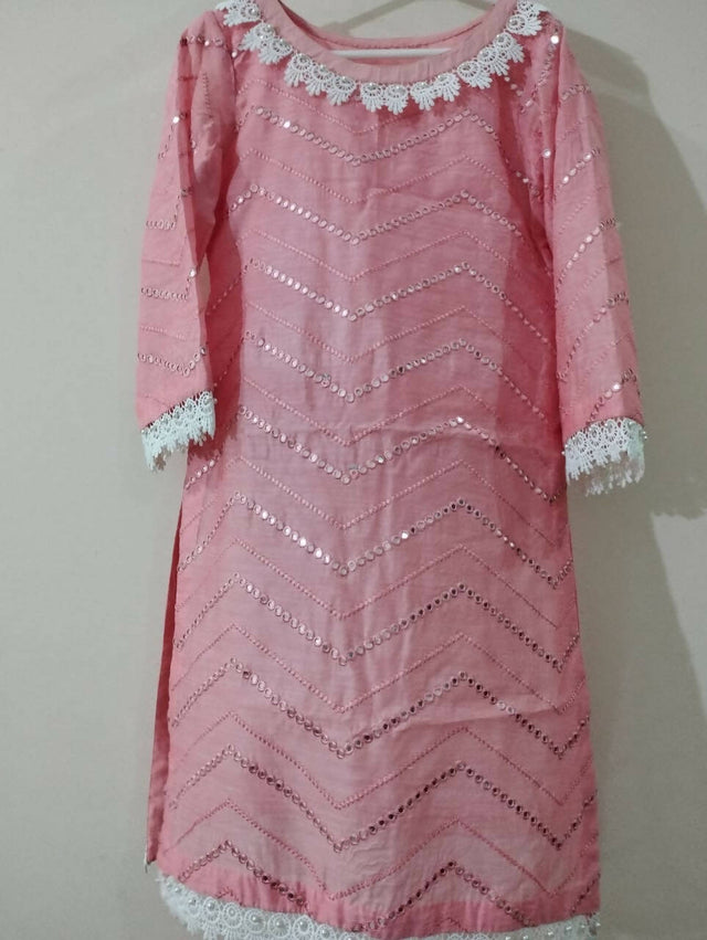 Pink Mirror Fully Embroidered 2Pcs| Women Locally Made Kurta | Small | Worn Once
