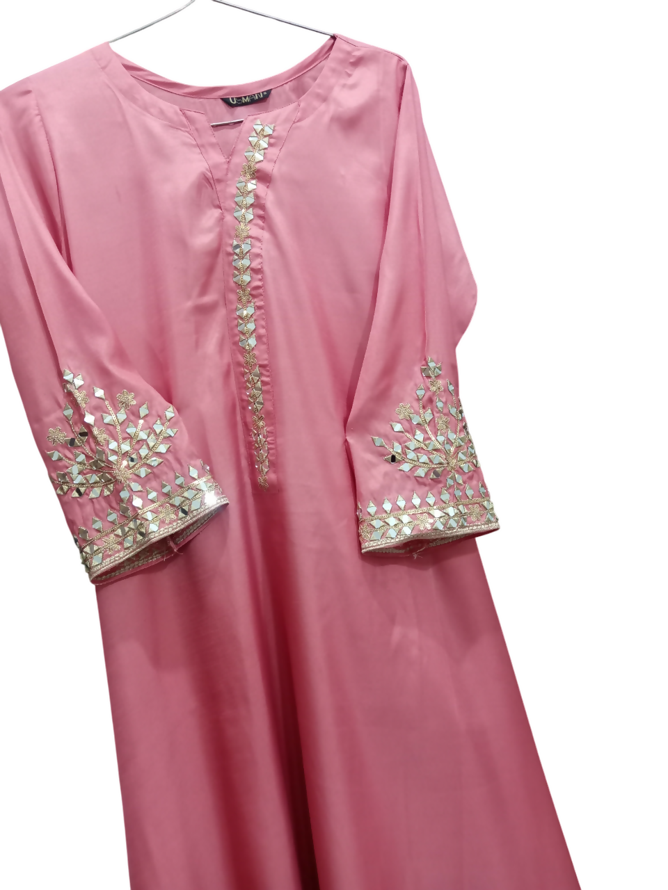 | MATERIAL & MEASUREMENT | Material : Shirt is embroidered silk Dupatta is organza Shalwar is in silk Measurement : Dupatta 2.5 meter Shalwar 38 " length Sleeves 20" Shoulder 15" Waist18" Chest 19" Length 50 |