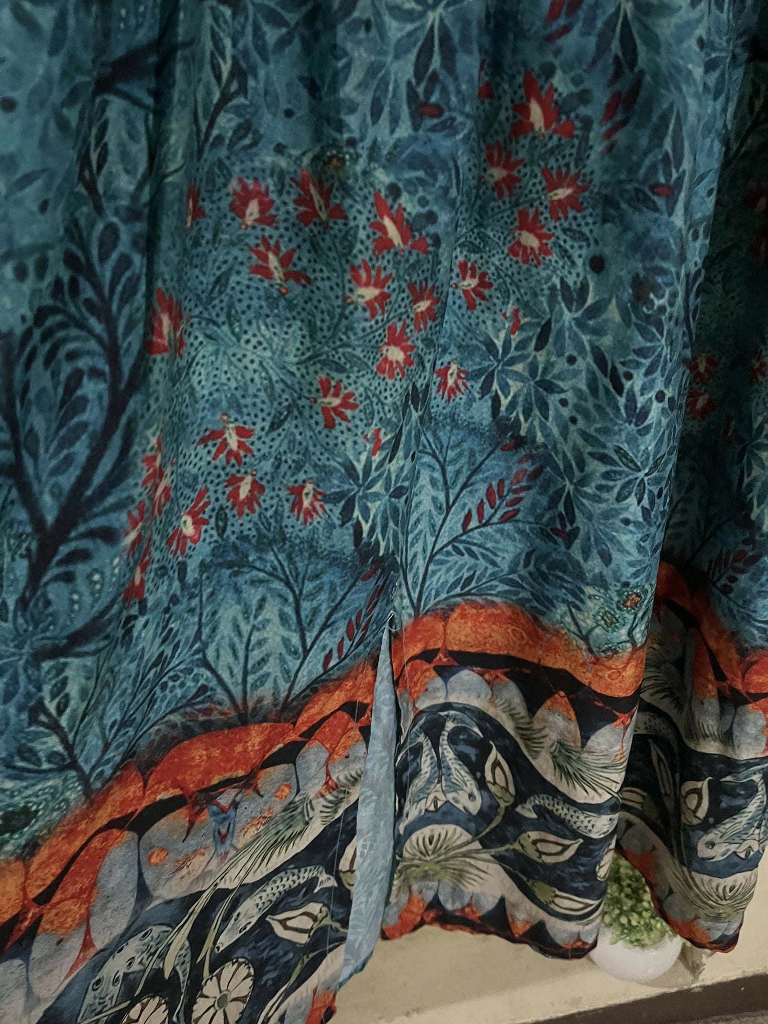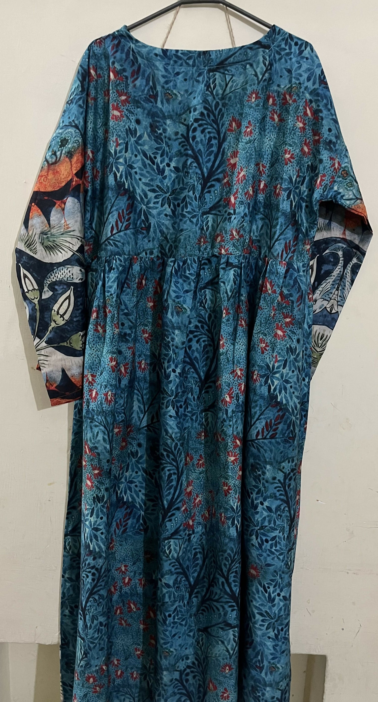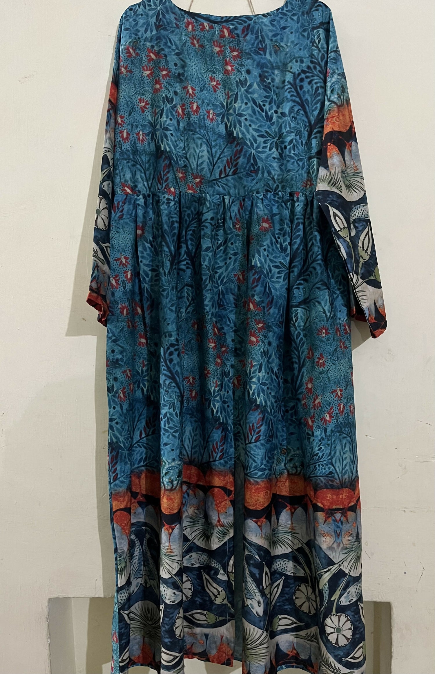 | MATERIAL & MEASUREMENT | Fabric: Silk lawn Size: Medium Measurments: Chest:20.5inches Length:48inches Shoulder:15inches |