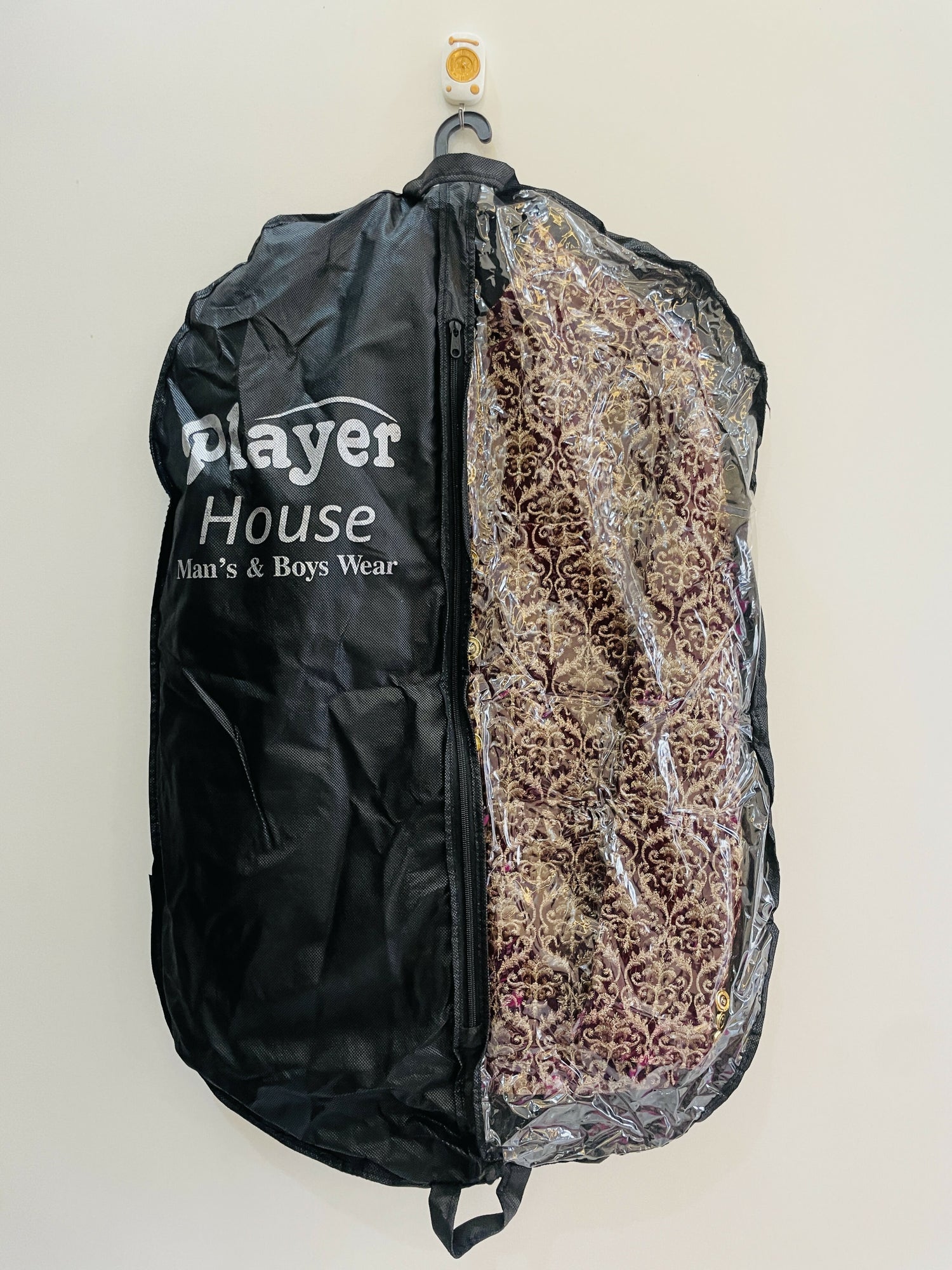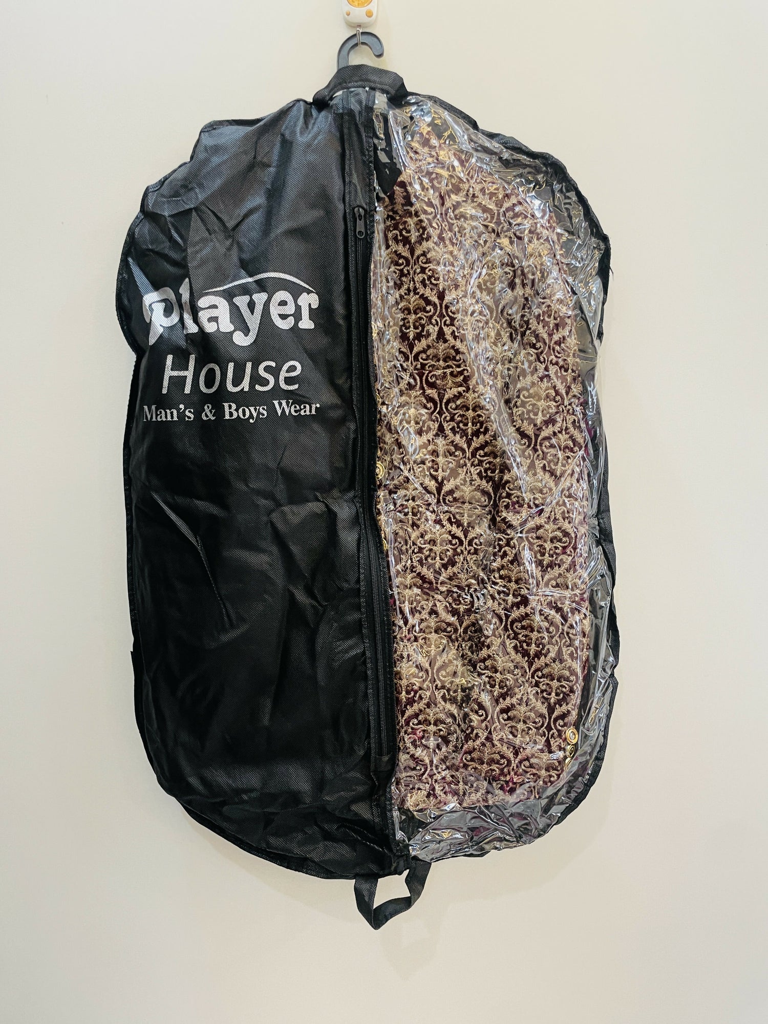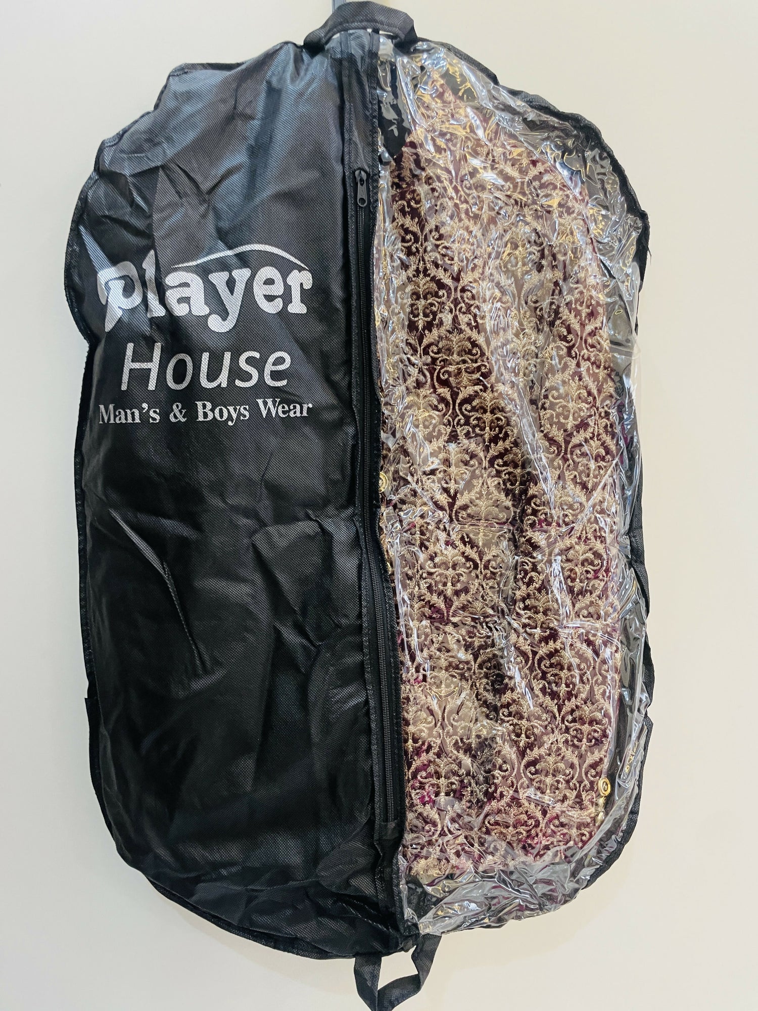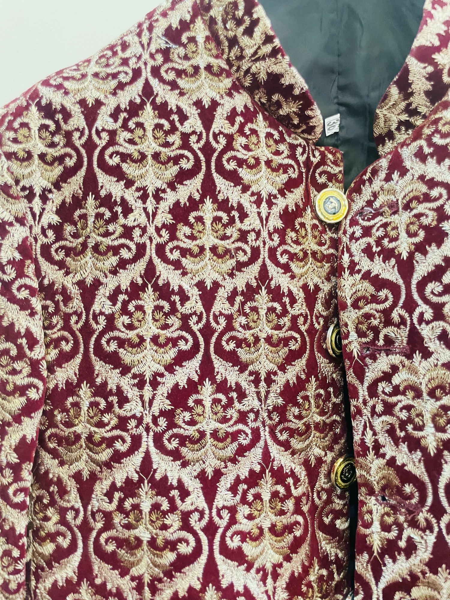 | MATERIAL & MEASUREMENT | Jamawar Embroidered prince coat Small to Medium Color: Maroon Size: 36 |