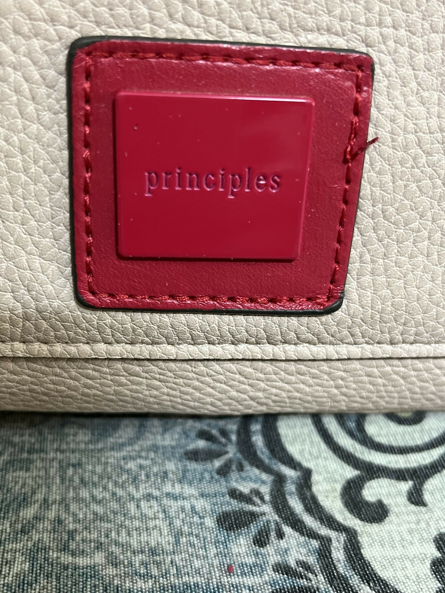 | MATERIAL & MEASUREMENT | Leather PRINCIPLES bag imported from UK in 10/10 condition. |
