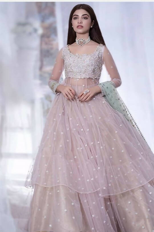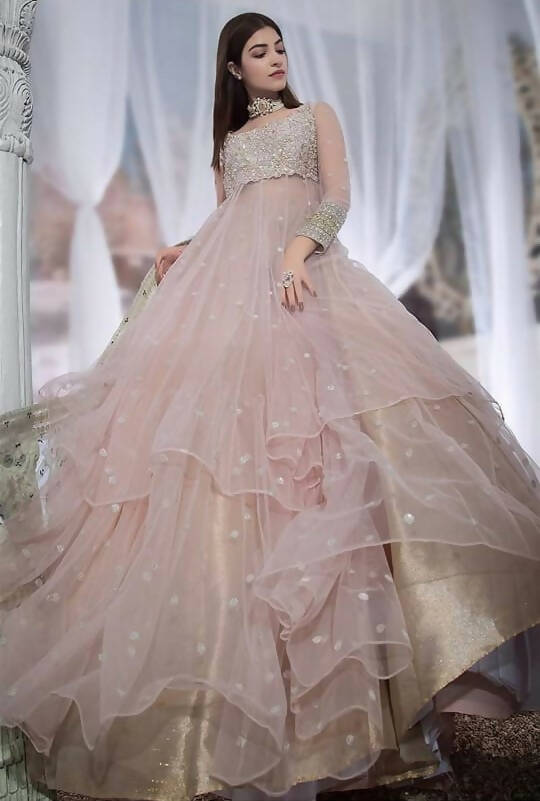 3pcs Pretty Partywear Peplum skirt dress beautifully designed as shown in pictures, top peplum then an inner shiny skirt and above the net skirt, and frail dupatta