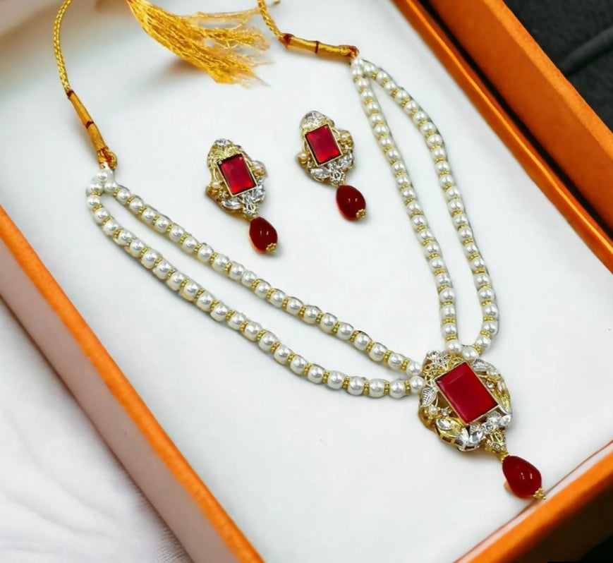 Rectangle Pearl Drop Necklace Set-238 | Women Jewelry | Wedding Jewelry & Sets | Brand New - Ruby is backordered and will ship as soon as it is back in stock.