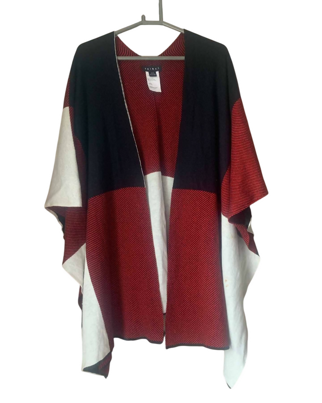 Red Black Cape Shawl | Women Sweaters & Jackets | Medium | New