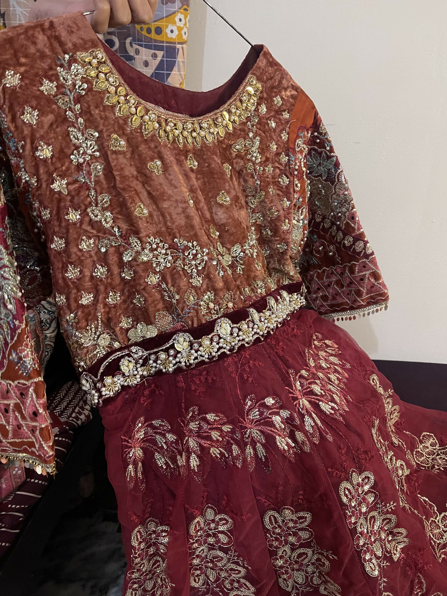 Fabric: Net + velvet bodice + silk sleeves and dupata boarders