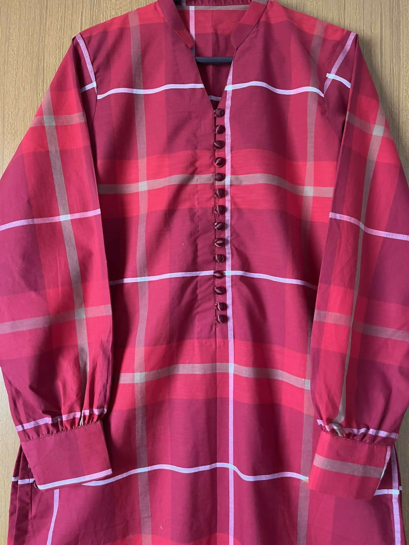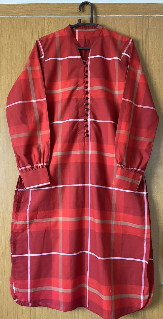 Red checked Kurta | Women Locally Made Kurta | Small | New