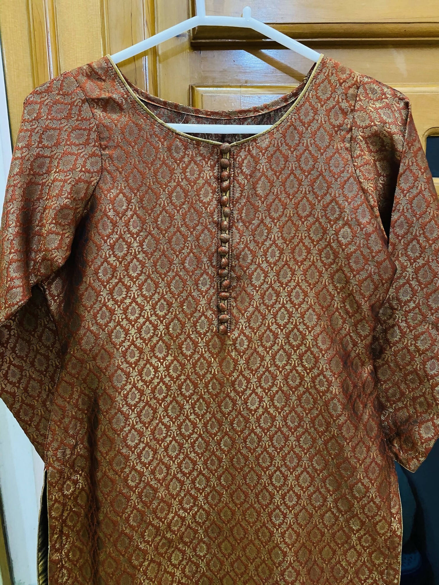 Rust 3 pc Jamavar Suit| Women Locally Made Formals | Small | Worn Once