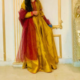 | MATERIAL & MEASUREMENT | Maxi fabric: Rawsilk Dupatta fabric:organza Colour: rust brown Note: colour can is change due to lightning Measurments: (Medium) Chest:36 Shoulder:14 Waist:34 Lenght:57 Sleeves length:22.5 Bicep fitting: 12.5 Kohni fitting : 11 |