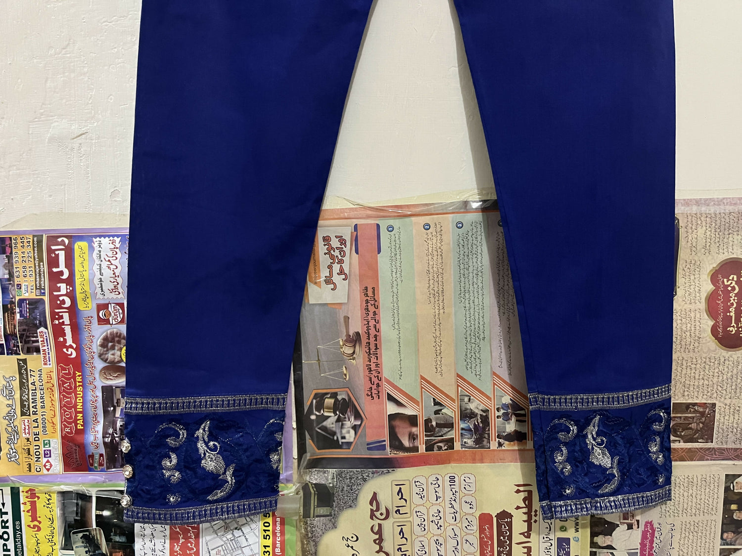 Sheikh Botique | Blue Embroidered Trouser | Women Bottoms & Pants | Size:40 | New is backordered and will ship as soon as it is back in stock.
