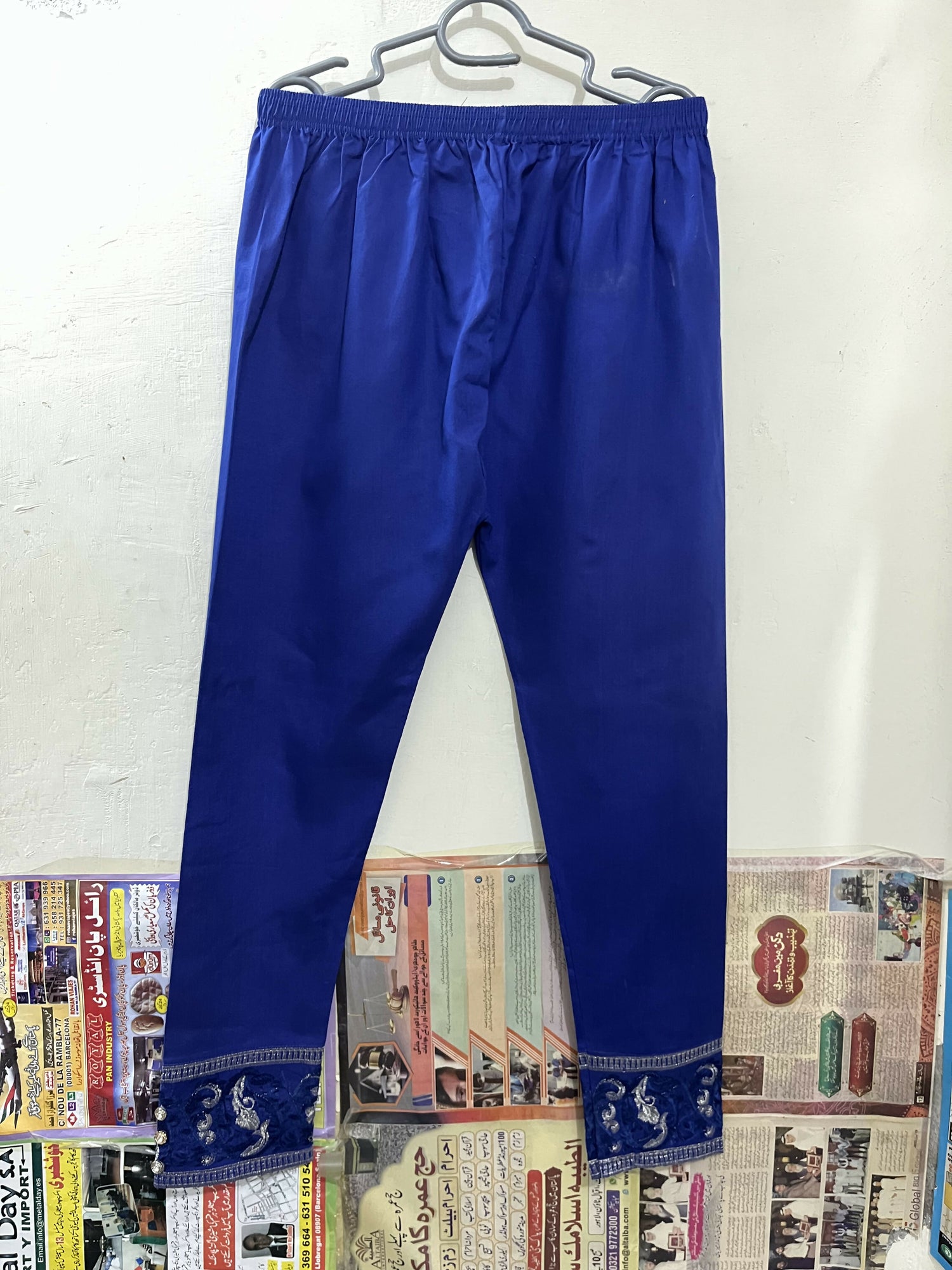 Sheikh Botique | Blue Embroidered Trouser | Women Bottoms & Pants | Size:40 | New