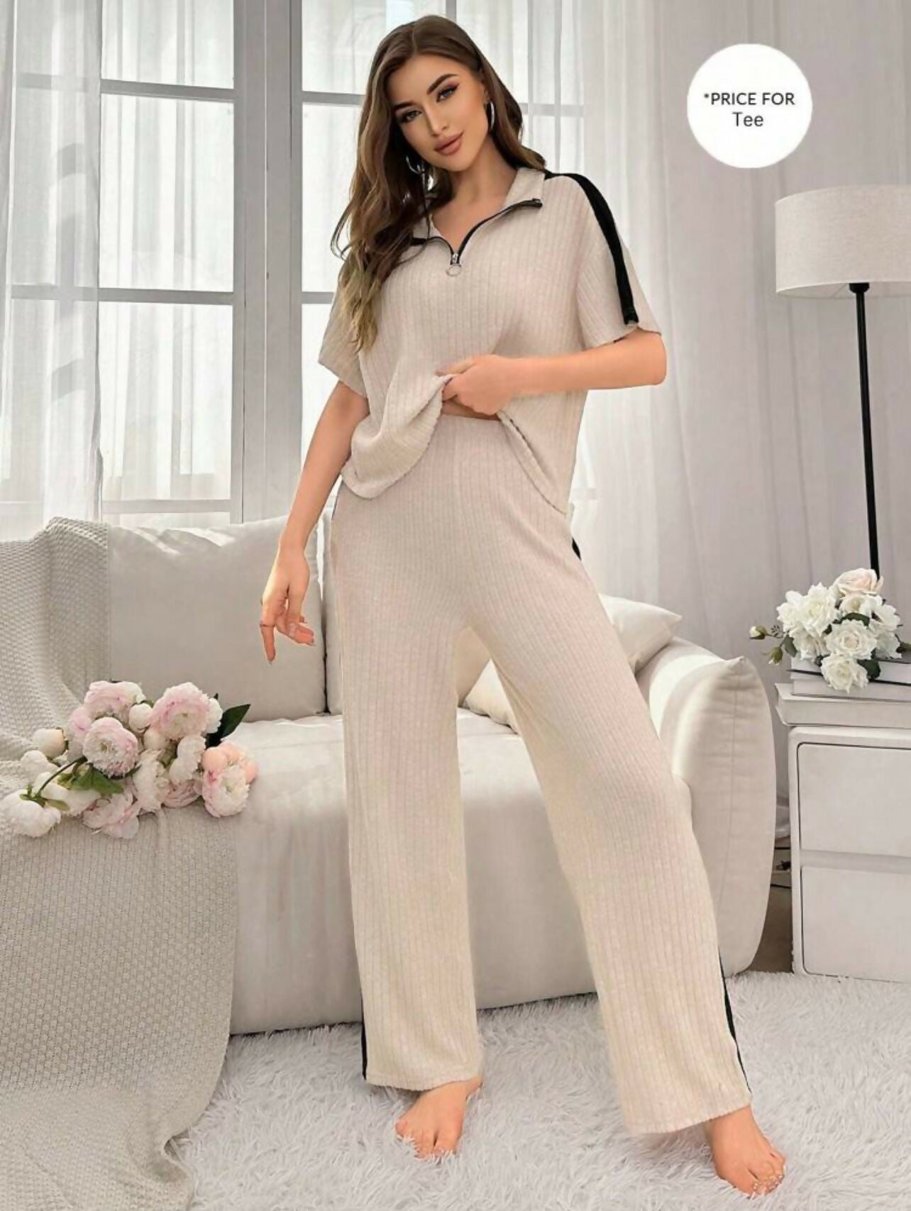 women’s colour blocking ribbed knit home wear top.